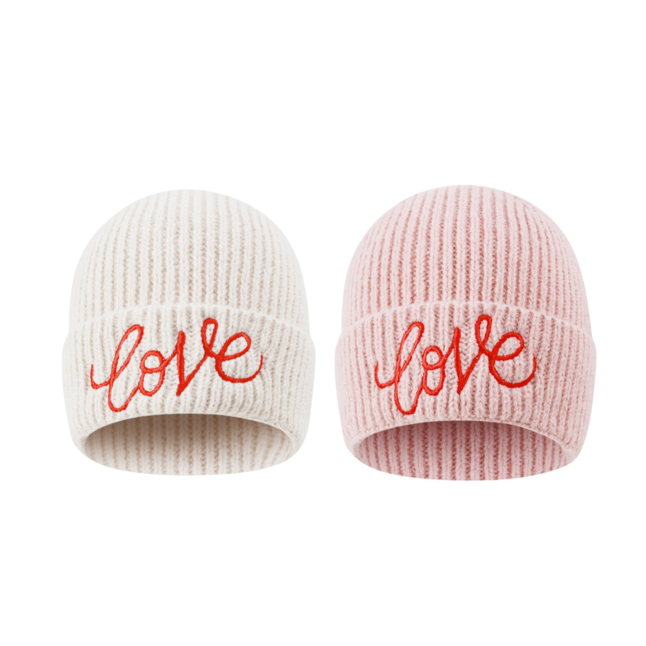 Beanie Mütze Love Liebe Beige Rosa Kopfbedeckung Herbst Winter
