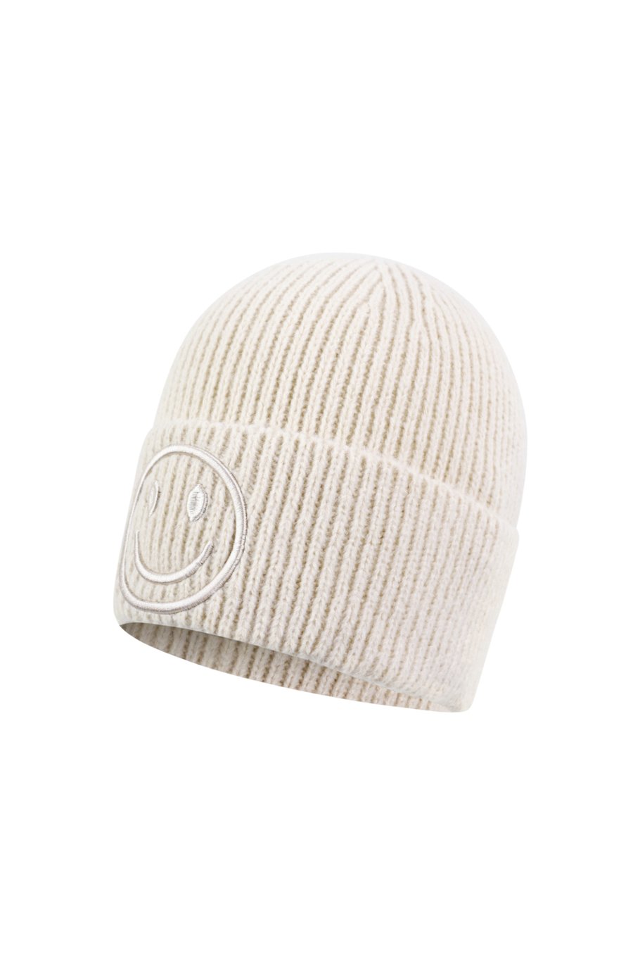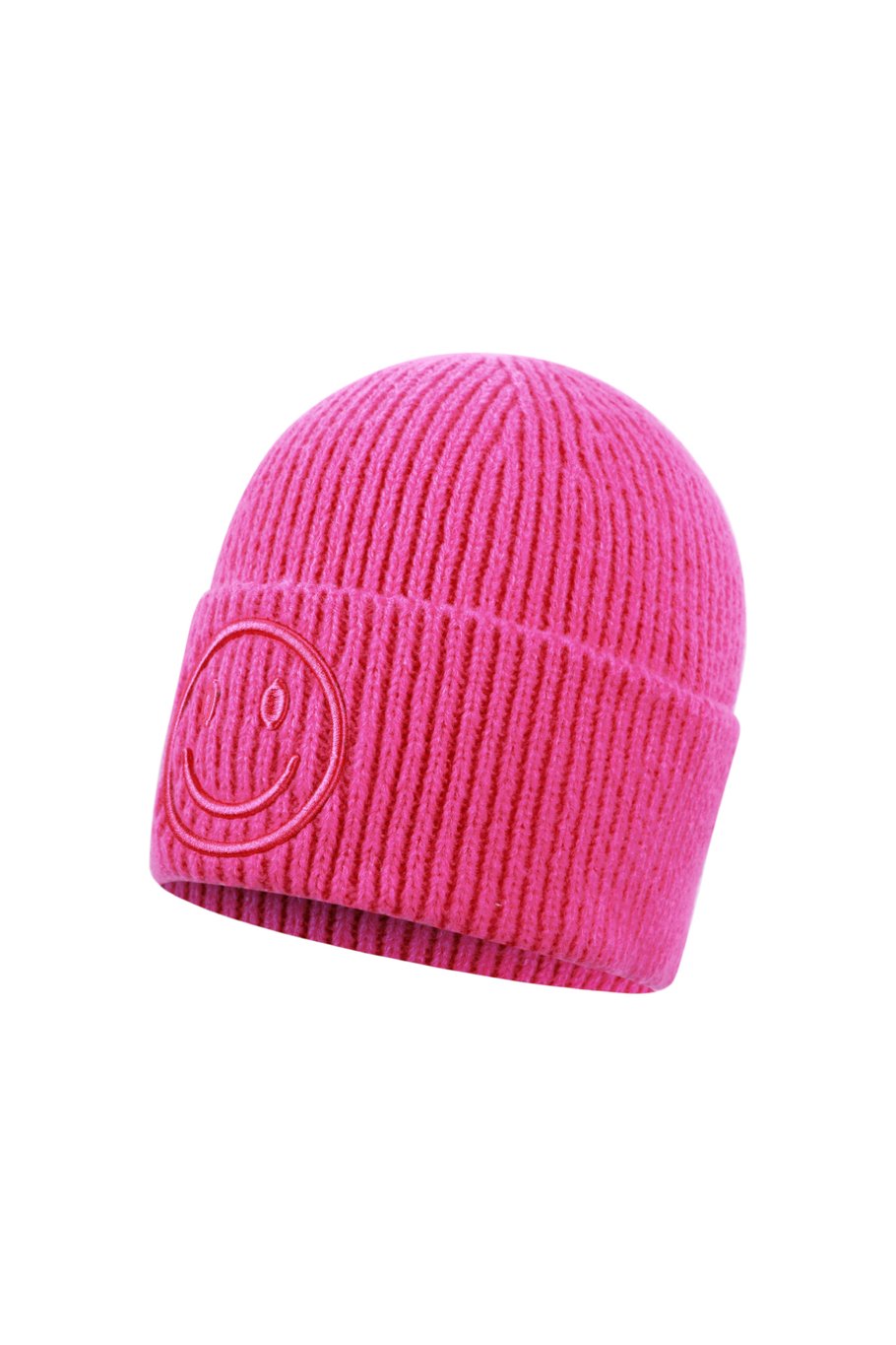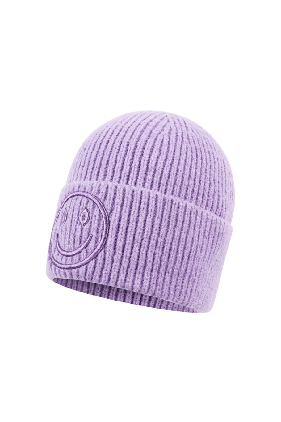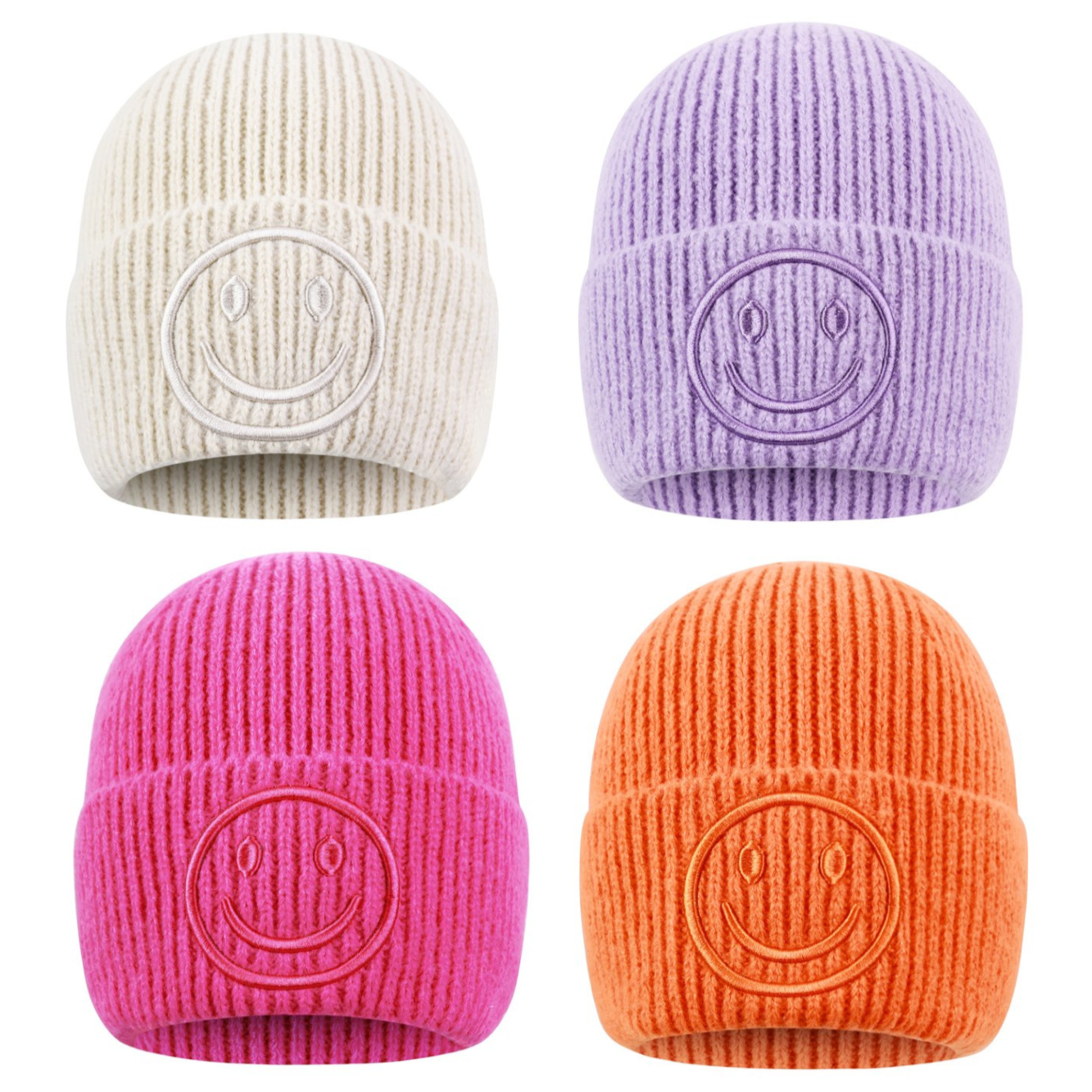 Beanie Mütze Smiley Beige Pink Orange Flieder Lila Kopfbedeckung Herbst Winter