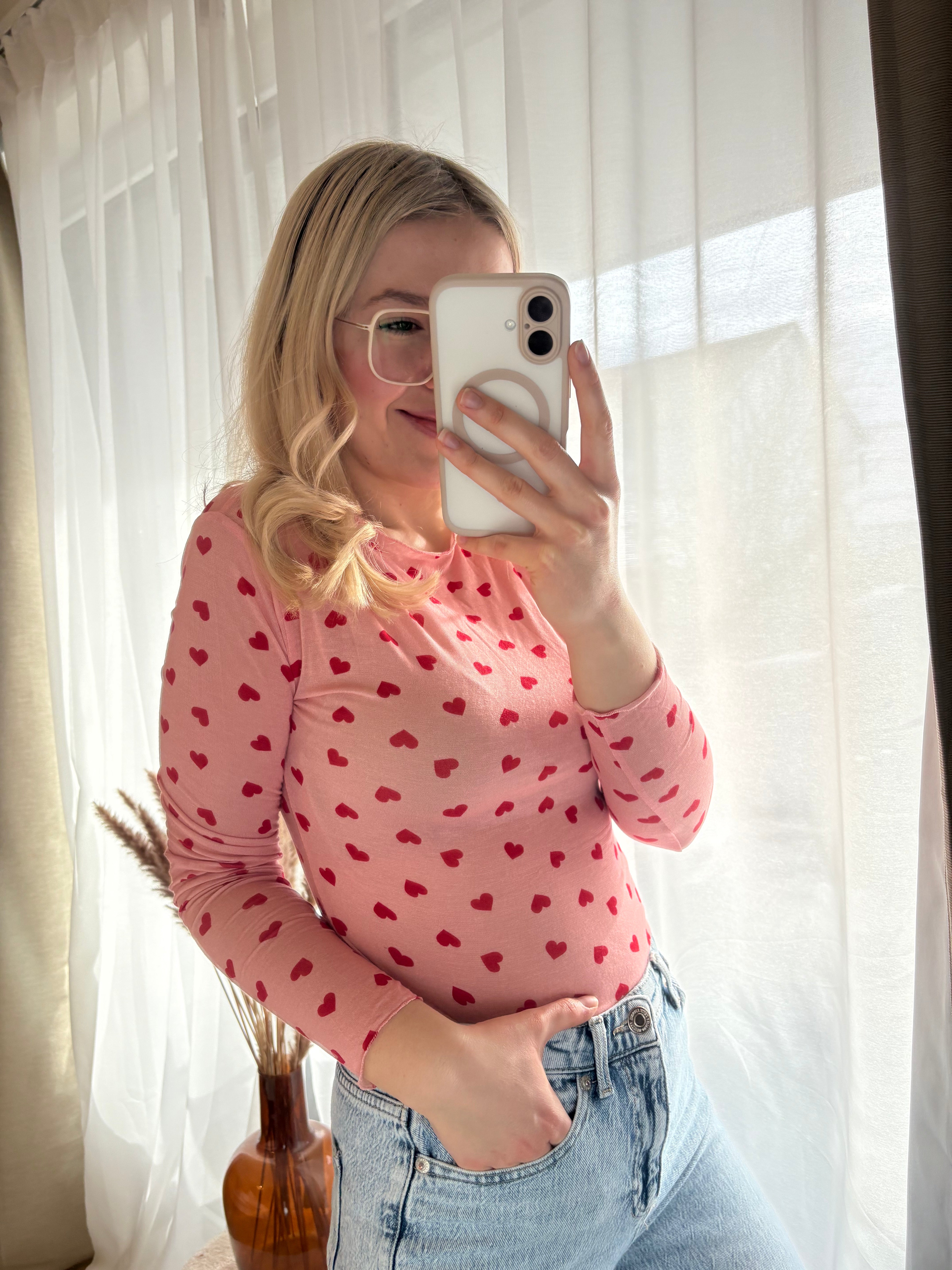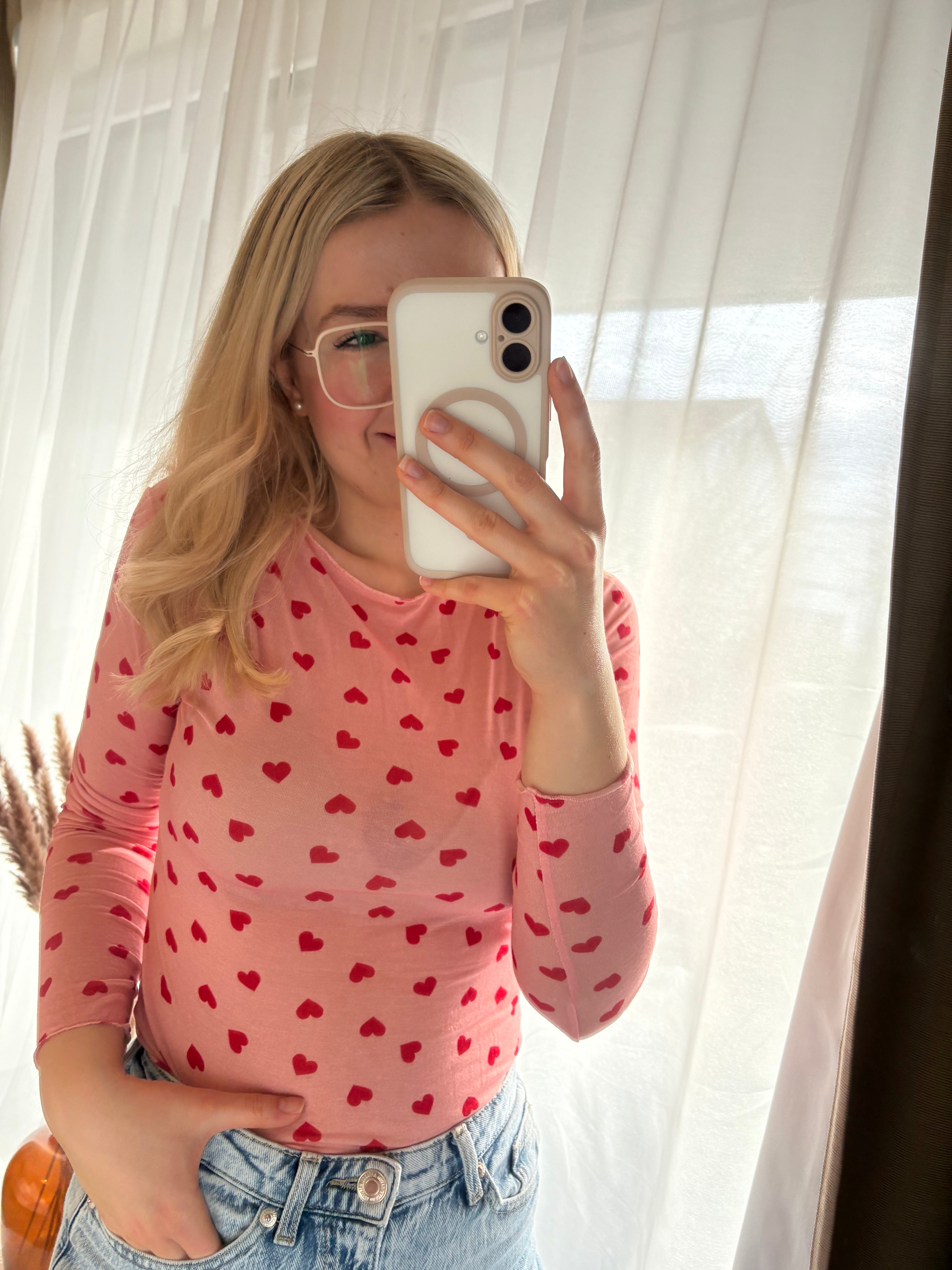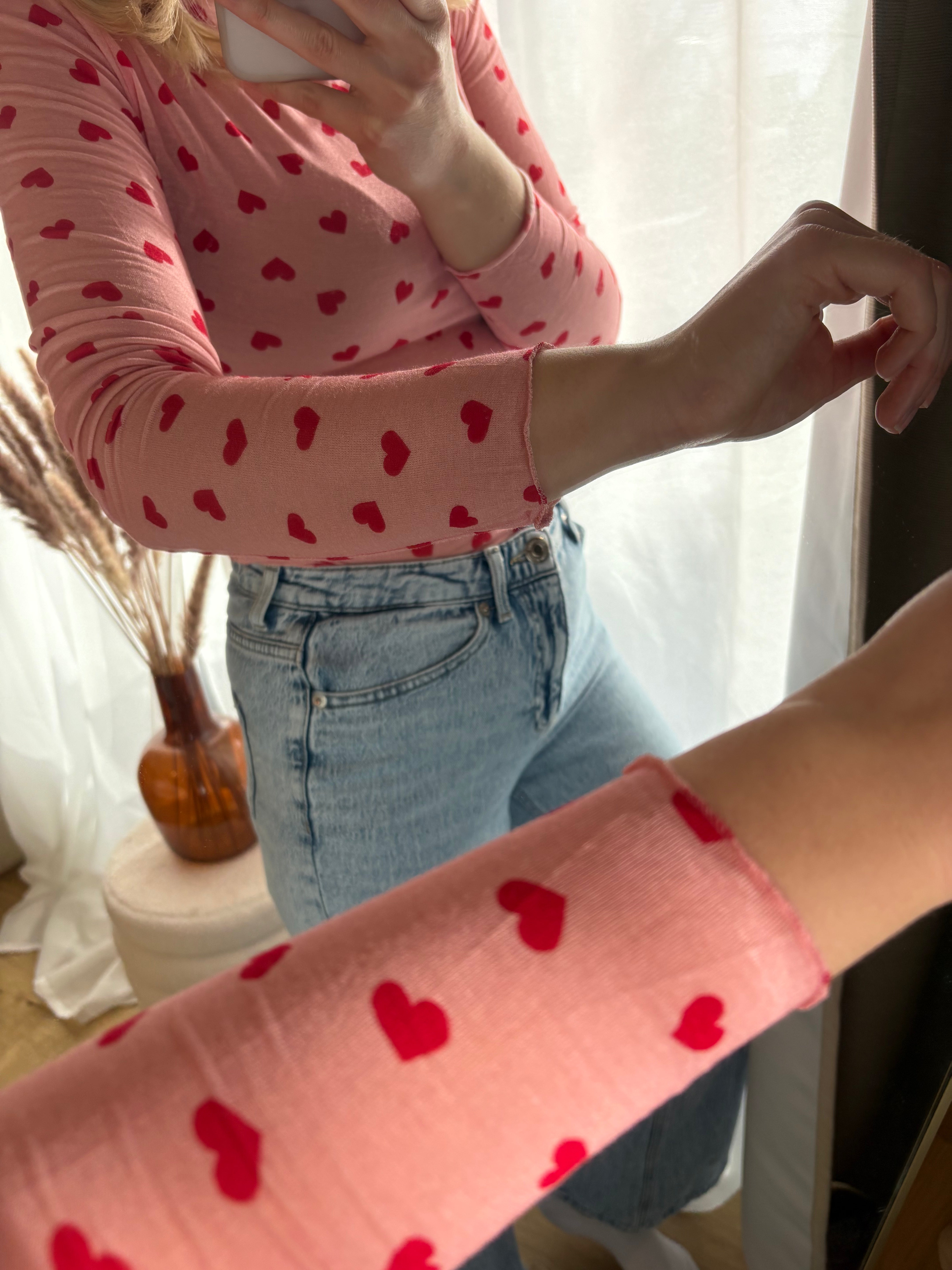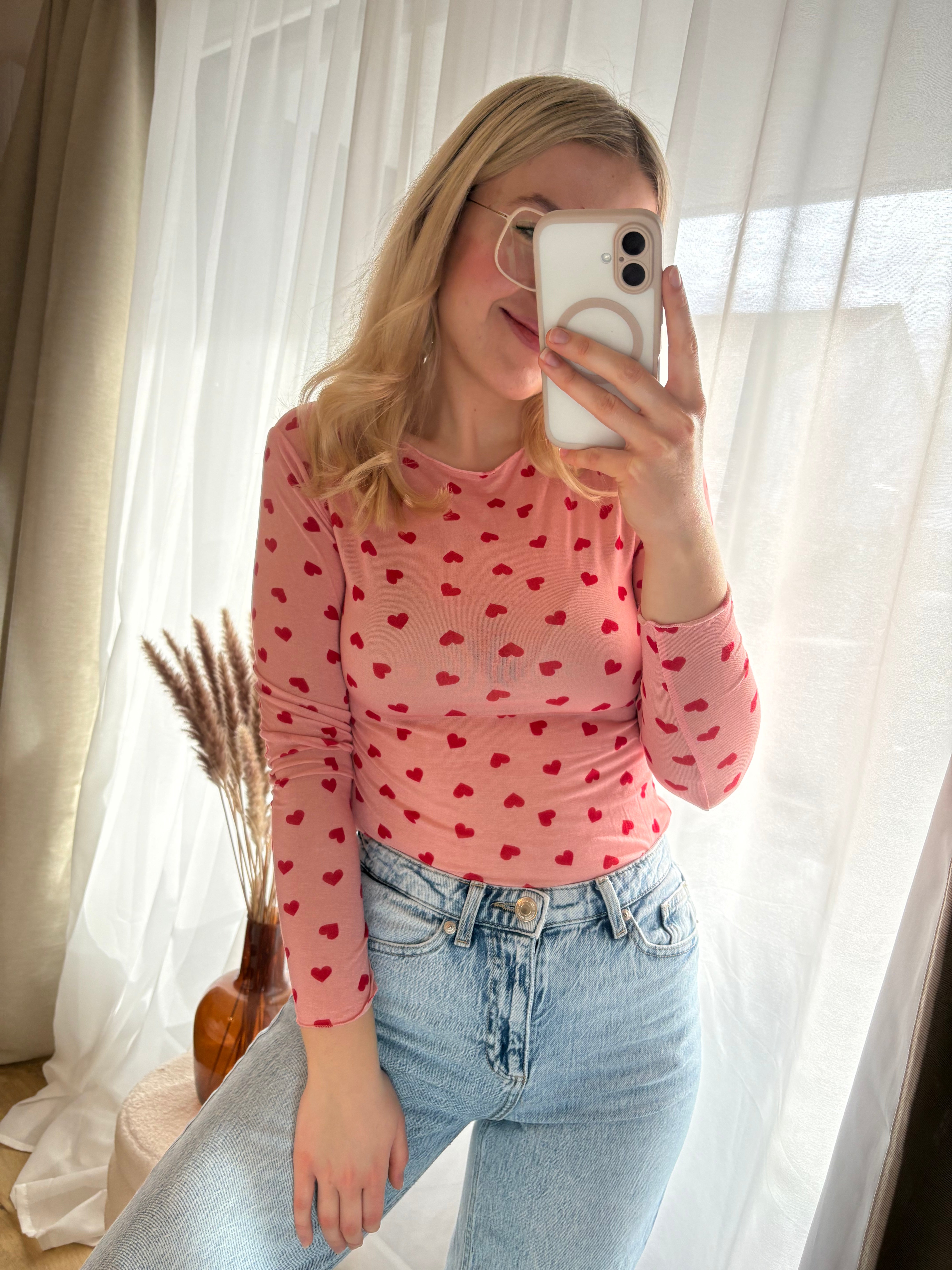 Cashmere Langarmshirt Longsleeve Herzen Rundhals