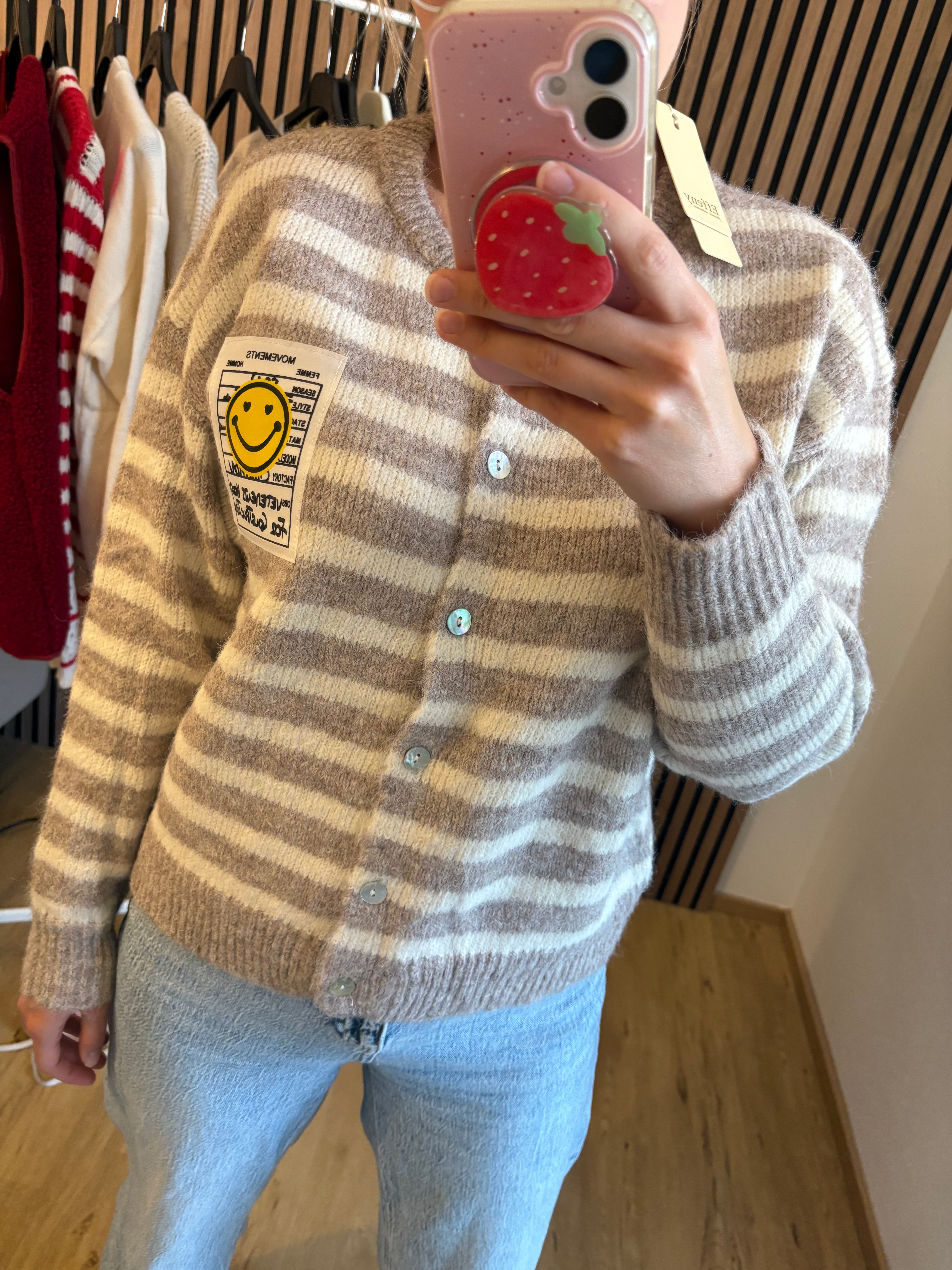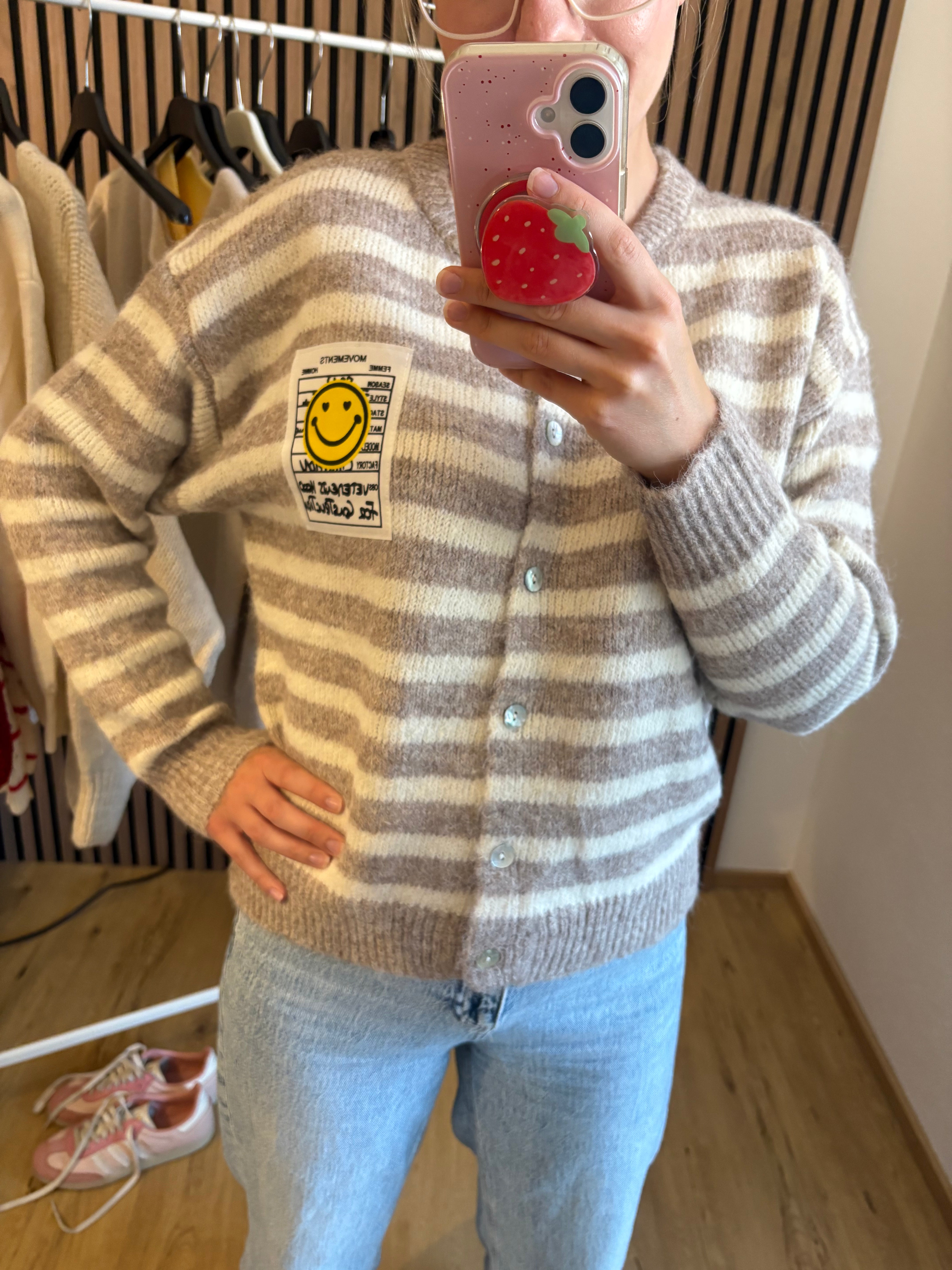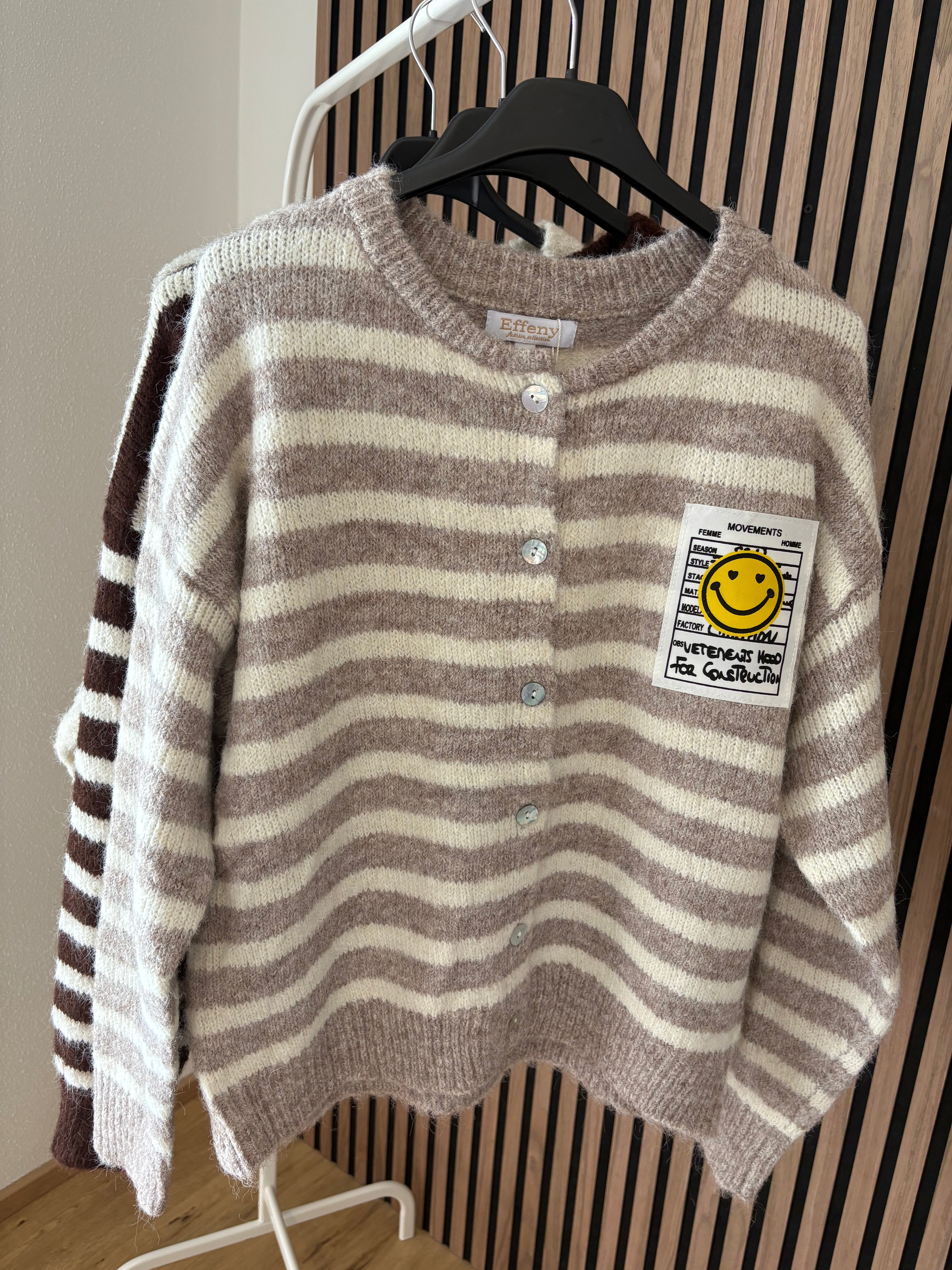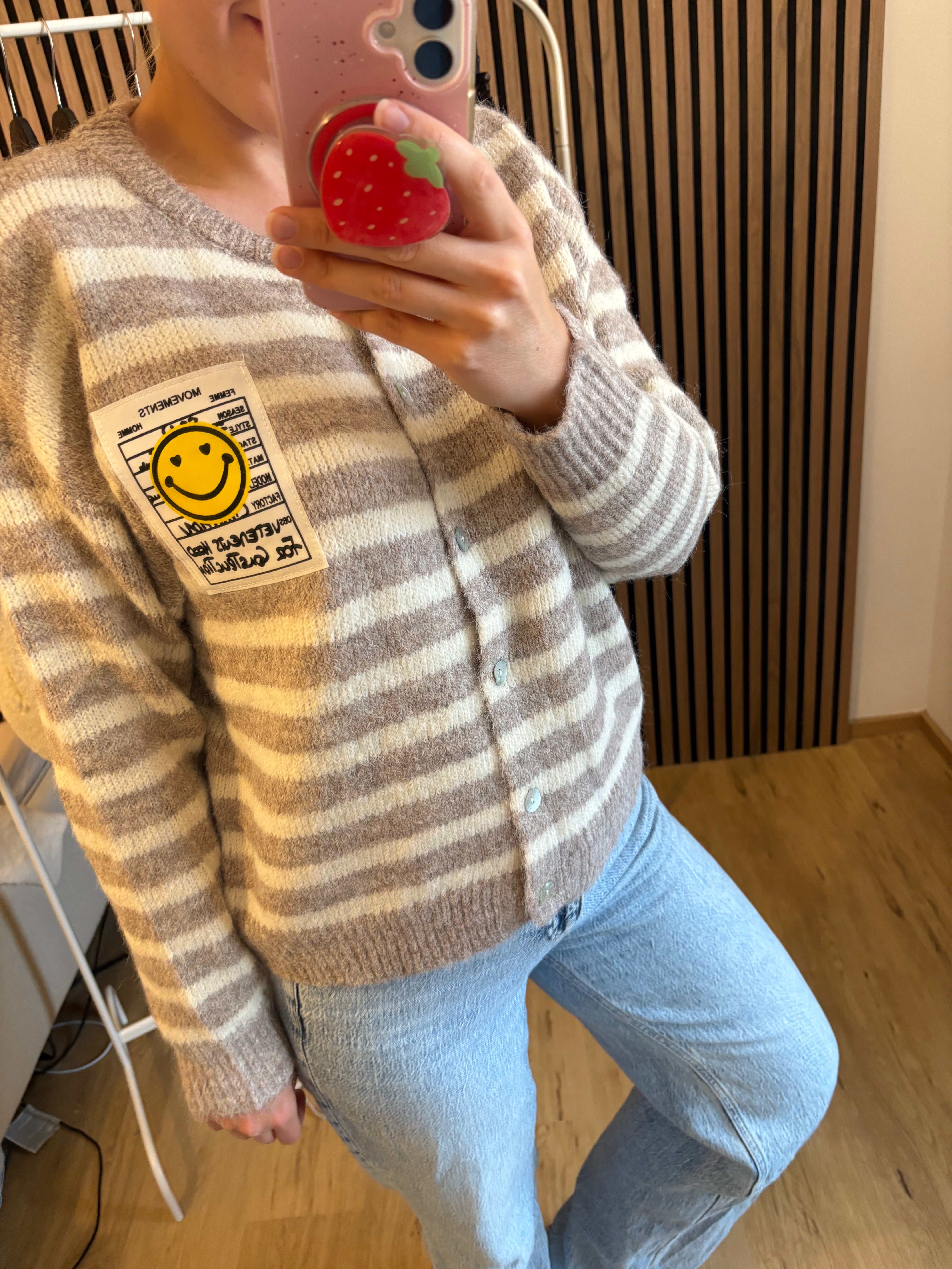 Happy Smile Cardigan Beige Weiß Gestreift Striped