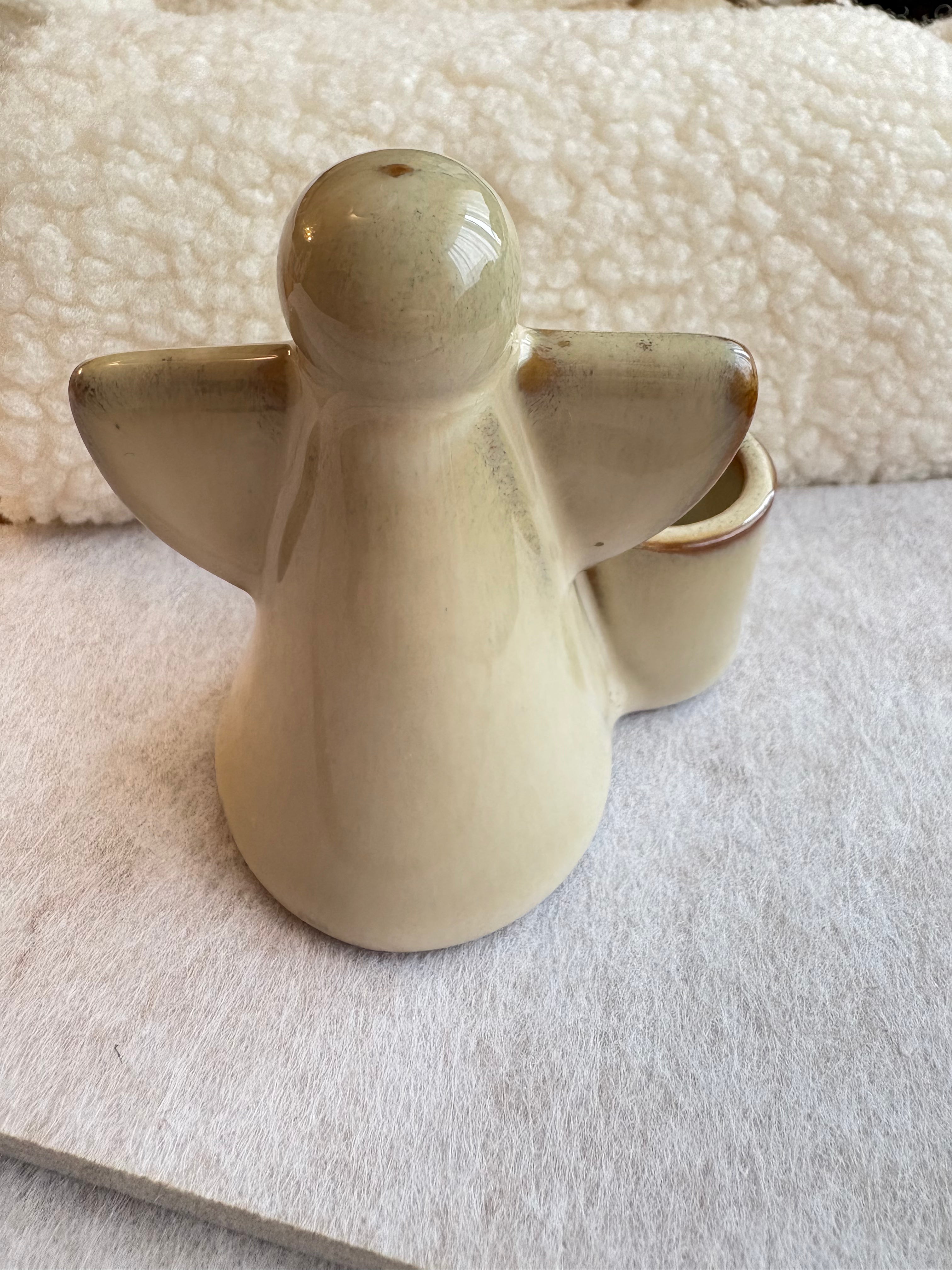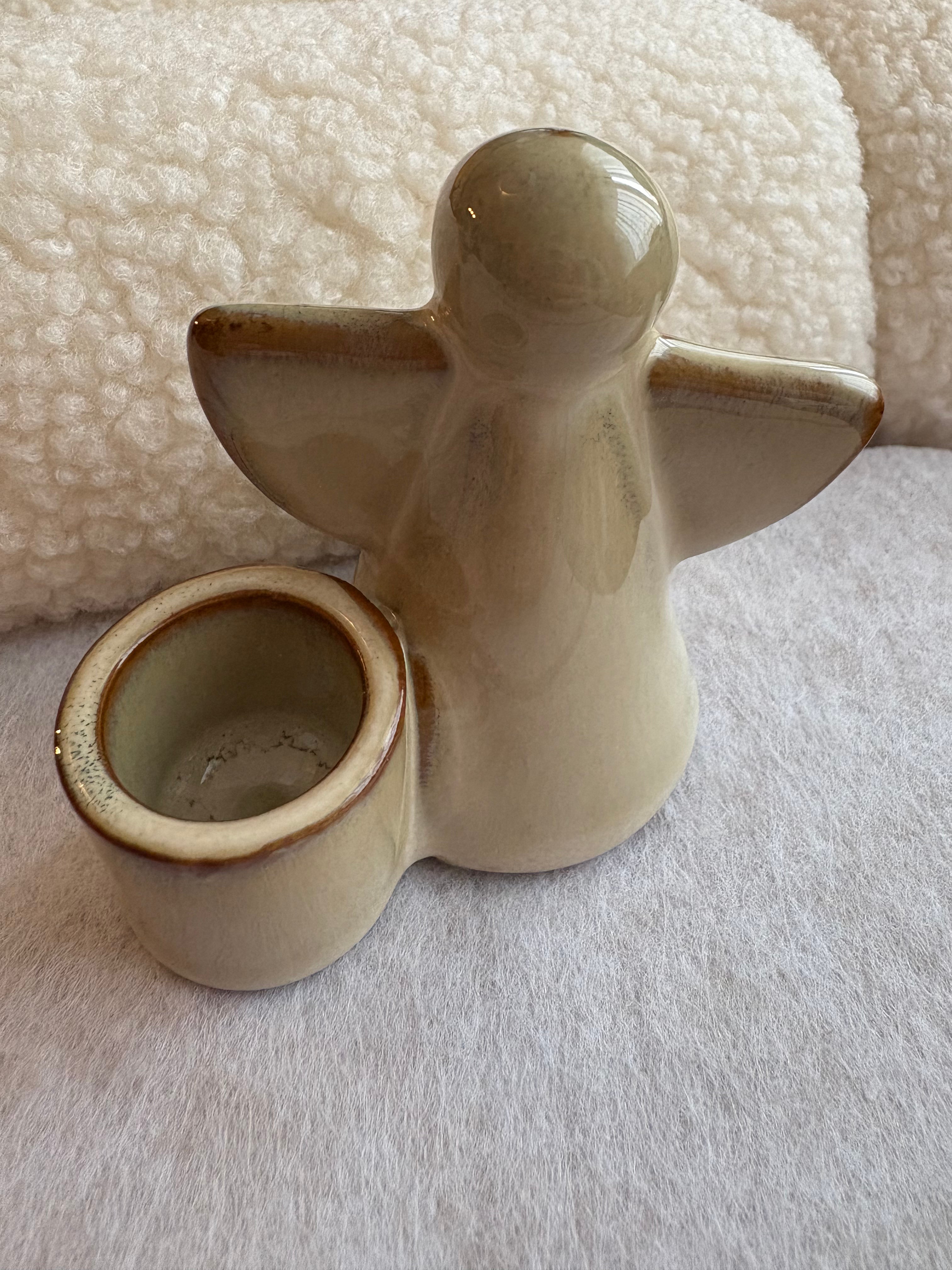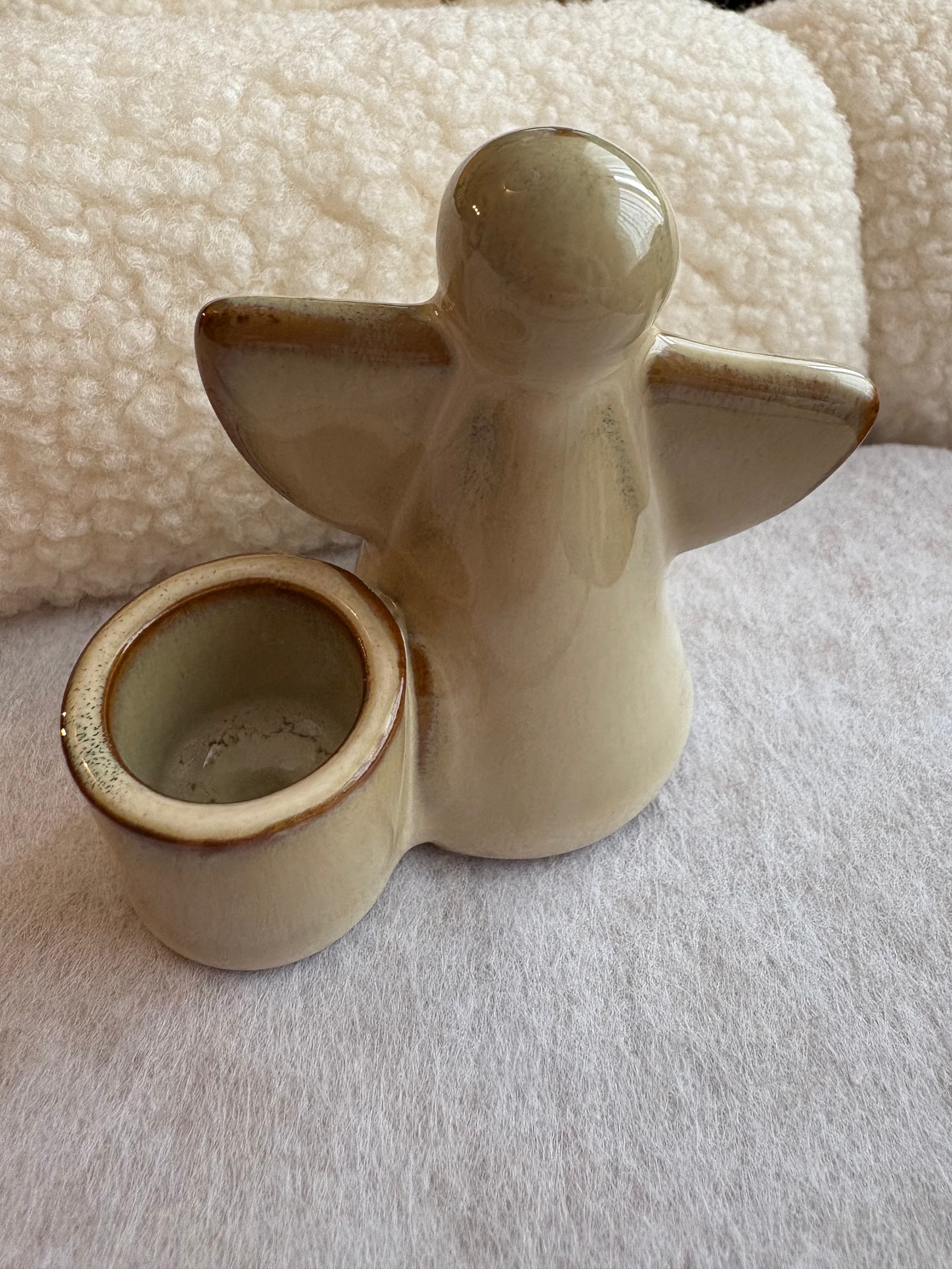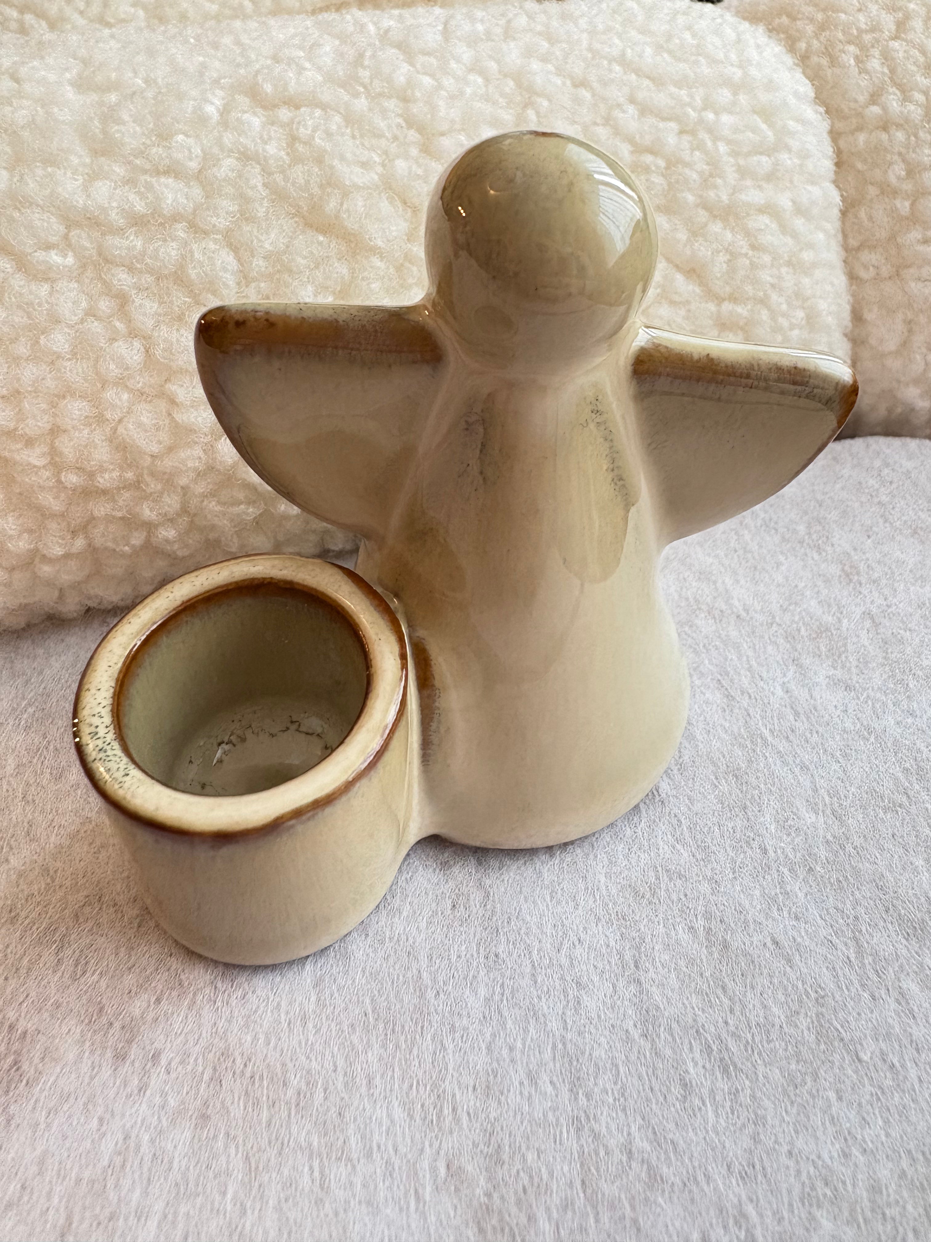 Kerzenhalter Engel Keramik glasiert Beige Stabkerze