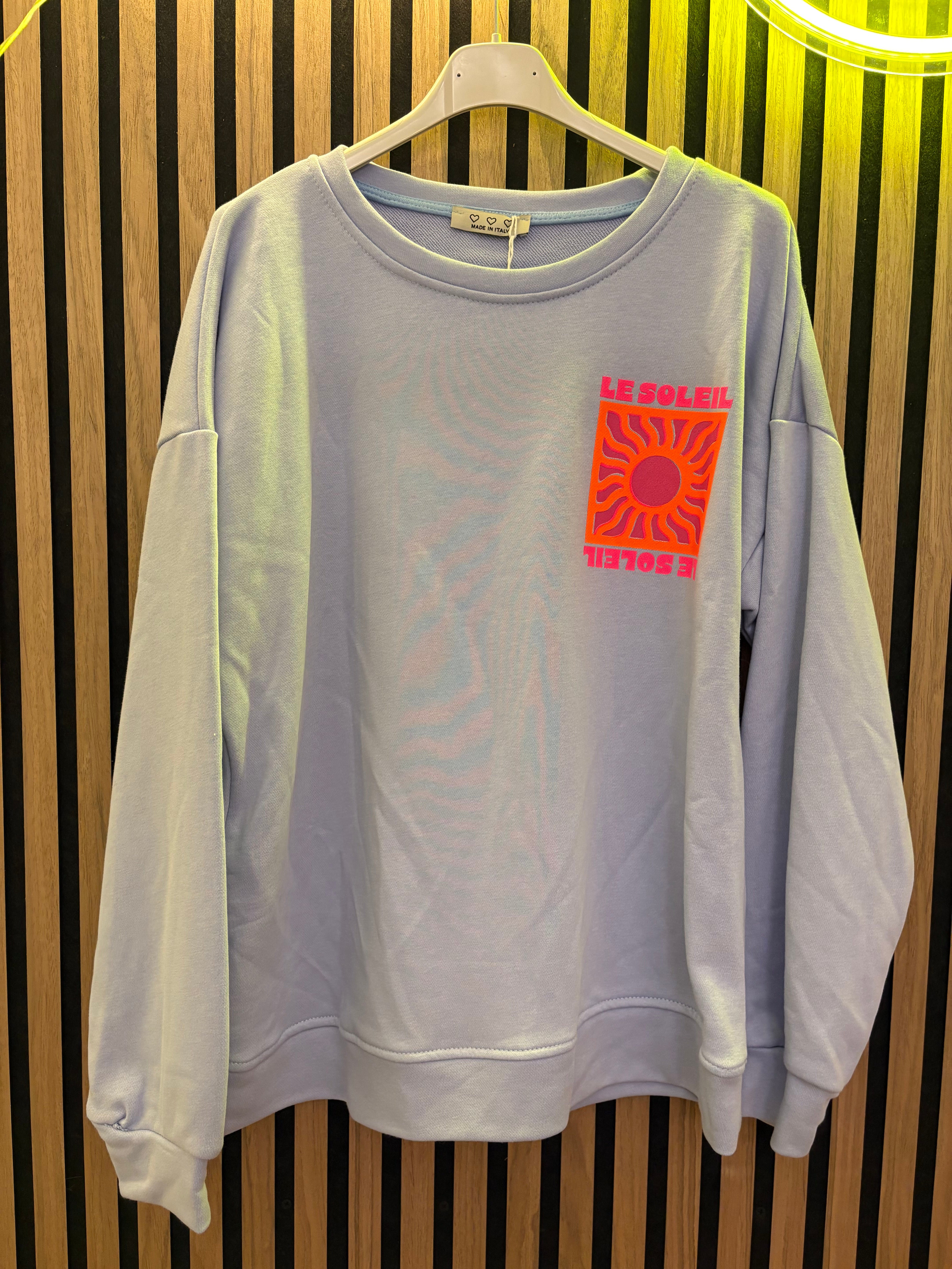 Le Soleil Oversize Sweatshirt Pullover – Babyblau mit Pink-Orange Print