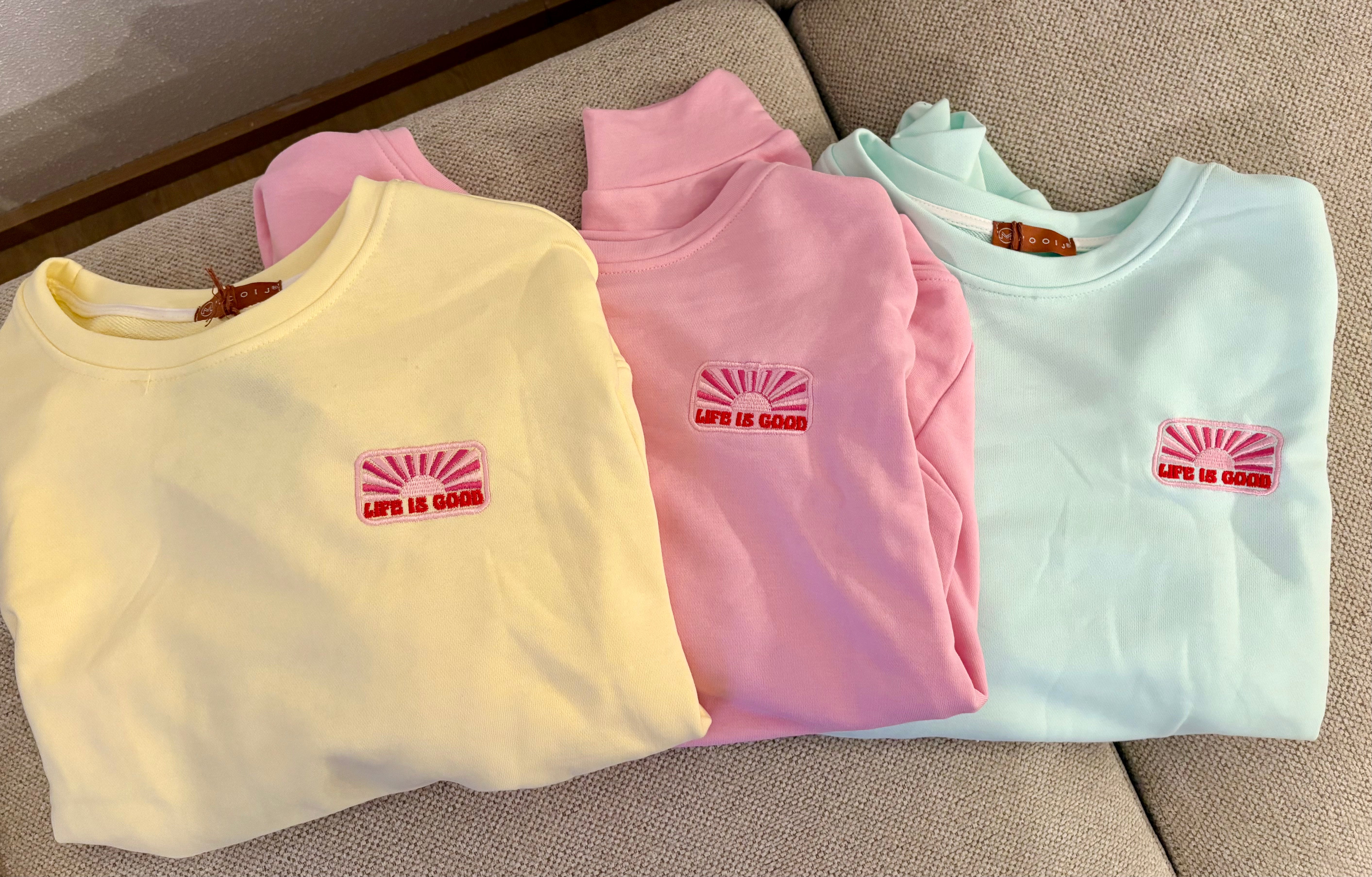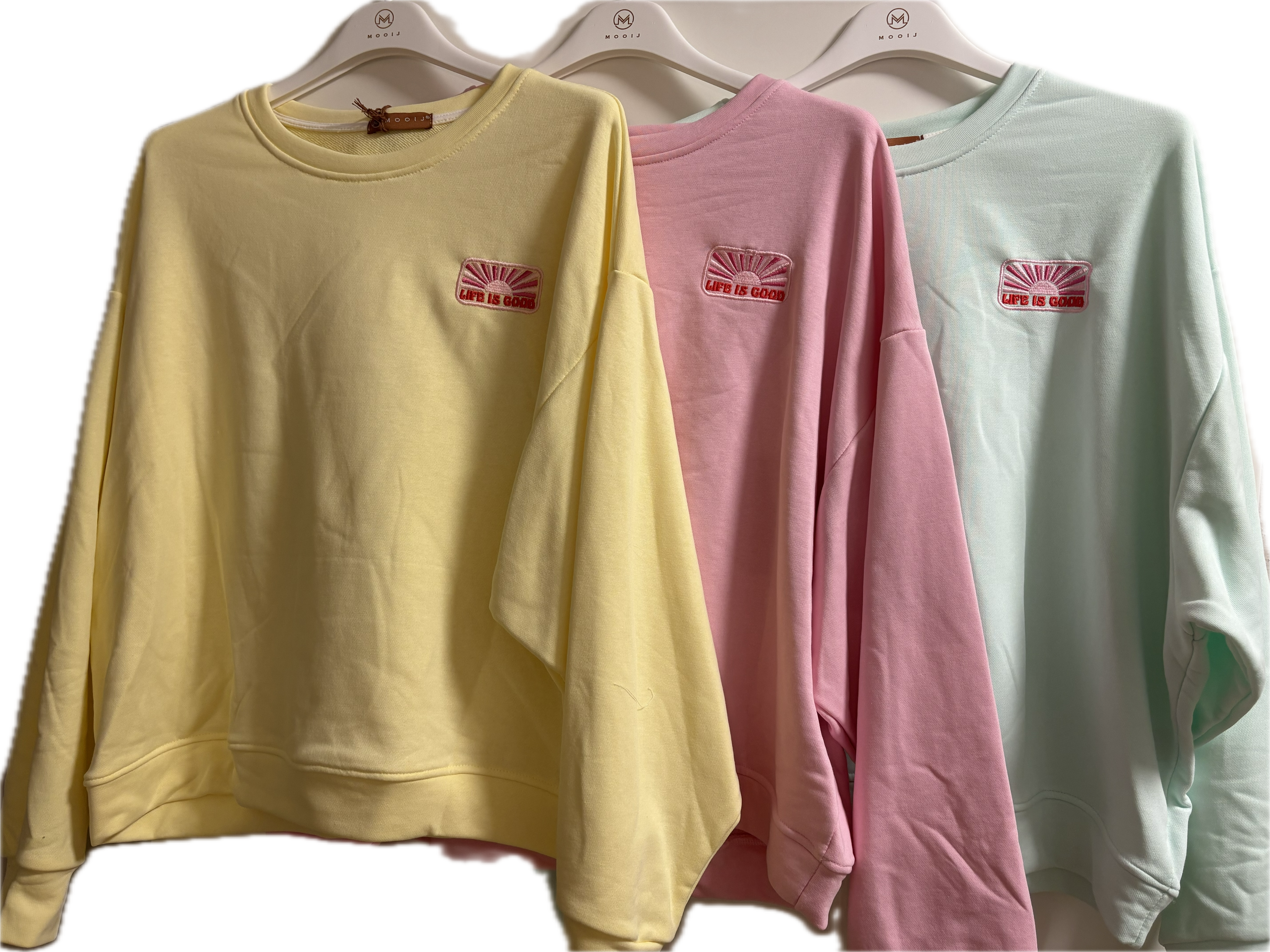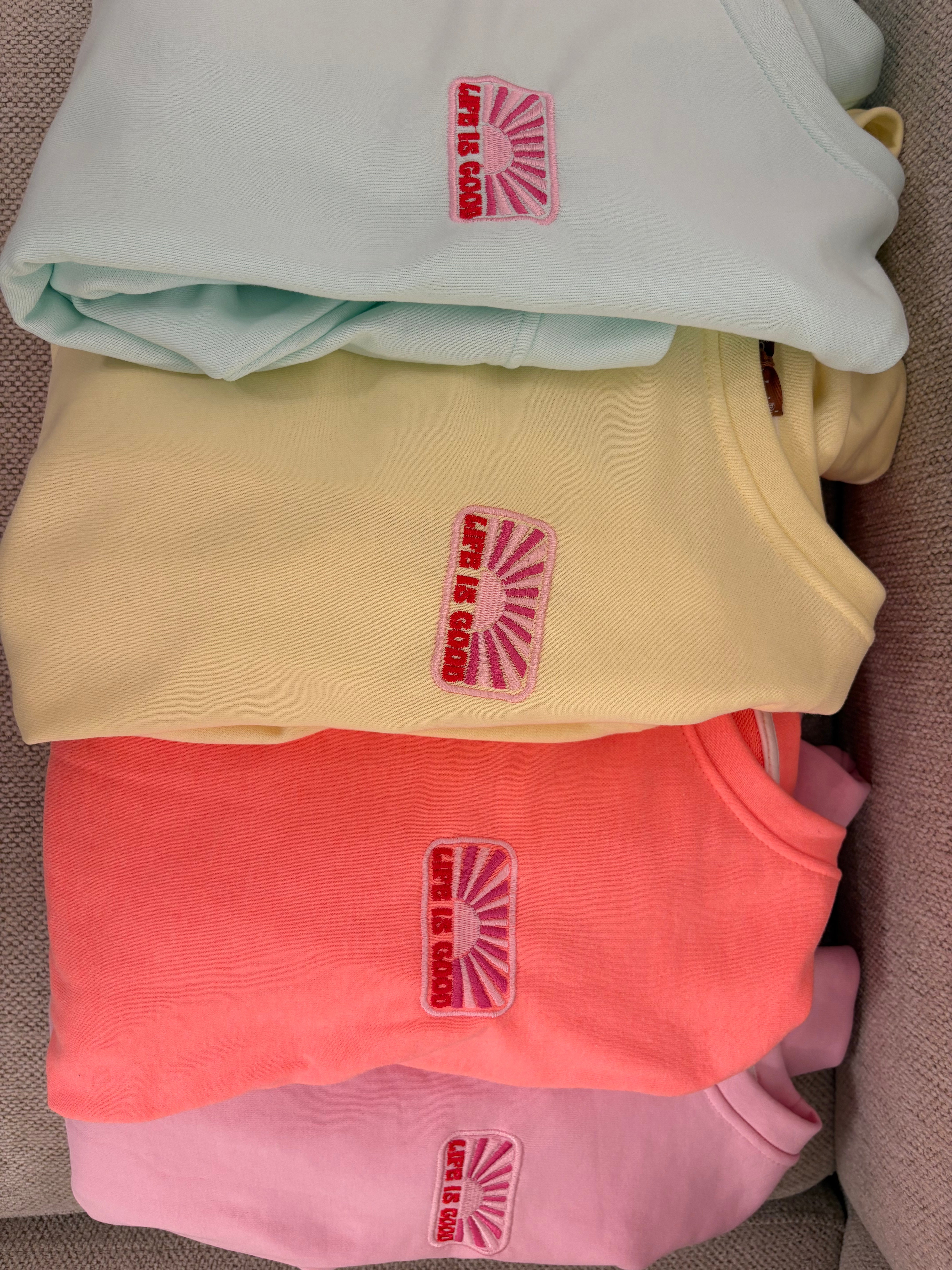 Life is Good Pullover Sweater Sweatshirt Rosa Gelb Mint Koralle