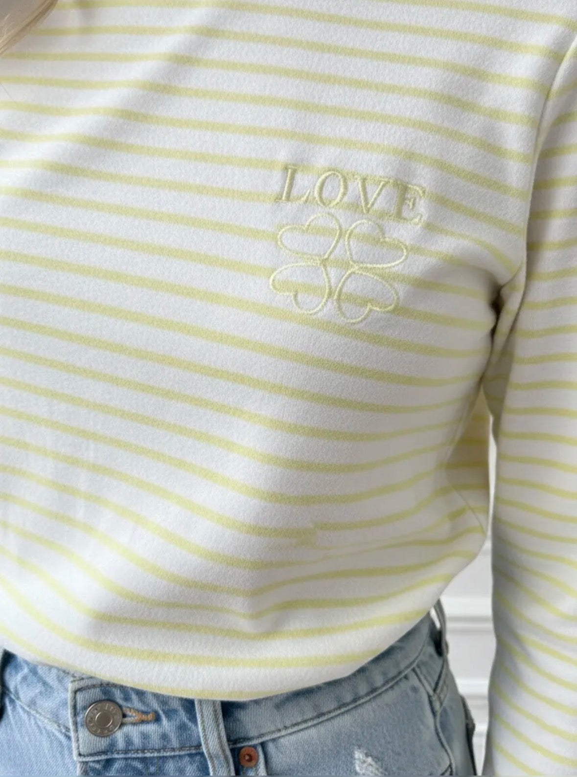 Dieses moderne Langarmshirt mit Streifen überzeugt mit liebevollen Details und angenehmem Tragekomfort. • Streifenoptik in verschiedenen Farben• „Love“-Stickerei und Kleeblatt-Detail•... Lesen Sie mehr