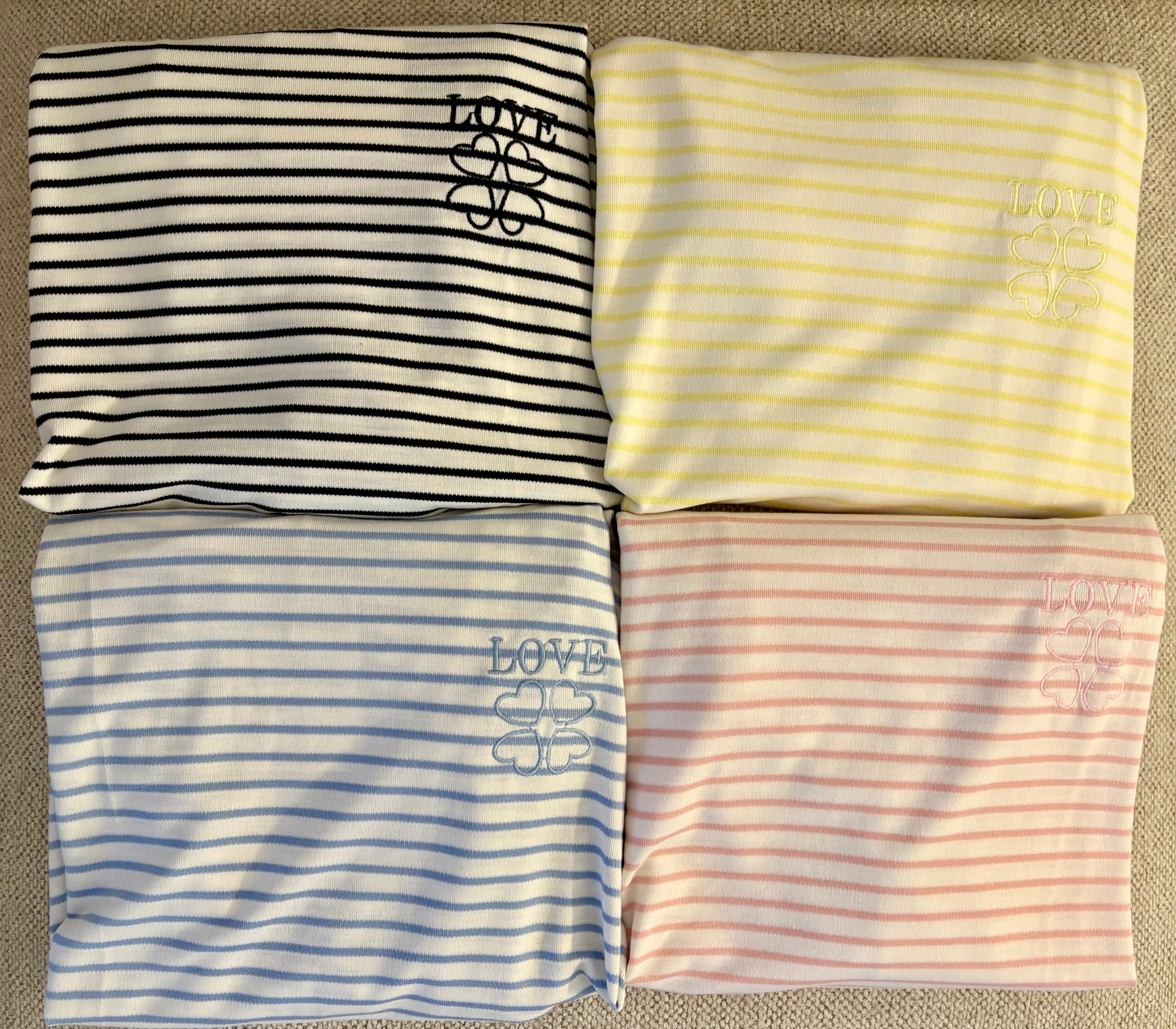 Longsleeve Langarmshirt Streifen Love Blau Rosa Schwarz Gelb