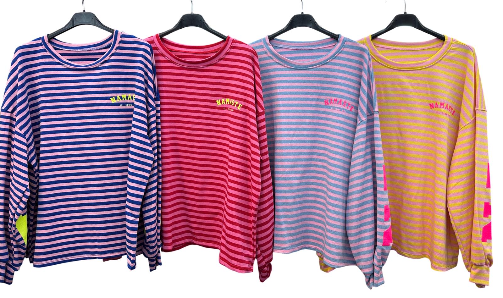 Dieses leichte „Namaste“-Sweatshirt überzeugt mit Streifen-Design und farbenfrohen Schriftakzenten. • Gestreiftes Sweatshirt mit „Namaste“-Schrift• Dünne, angenehme Qualität• Farben: Rot-Rosa mit... Lesen Sie mehr