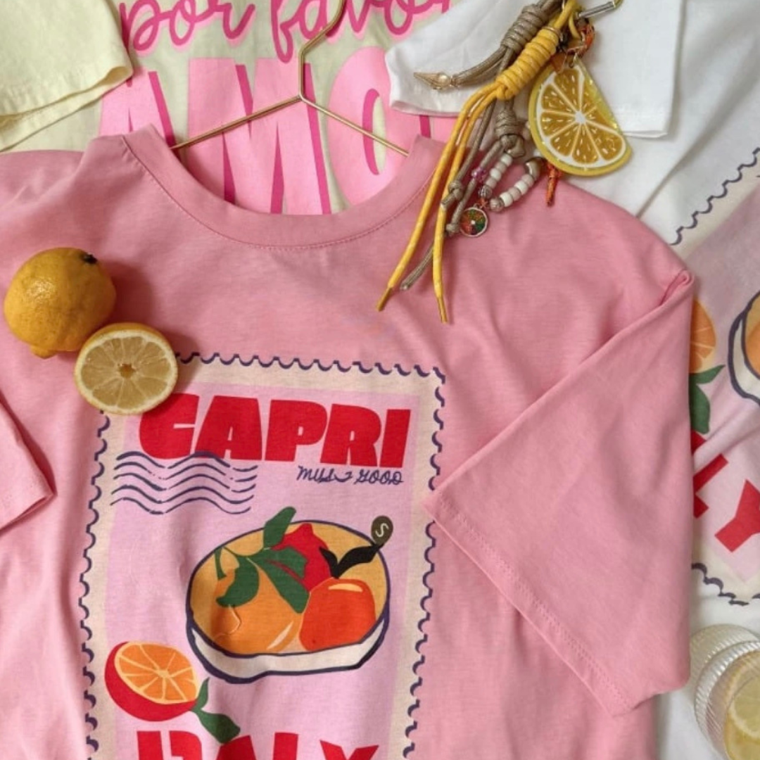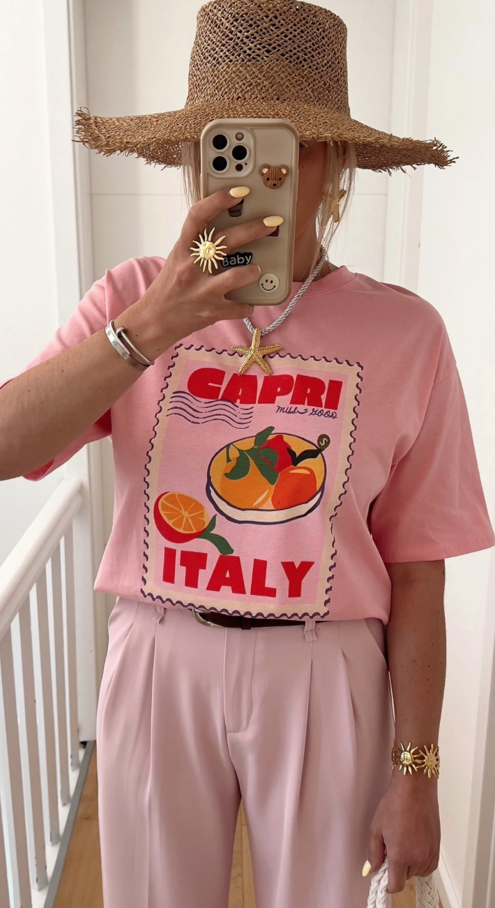 Oversized T-Shirt Capri Rosa Ibiza Statement Einheitsgröße Made in Italy
