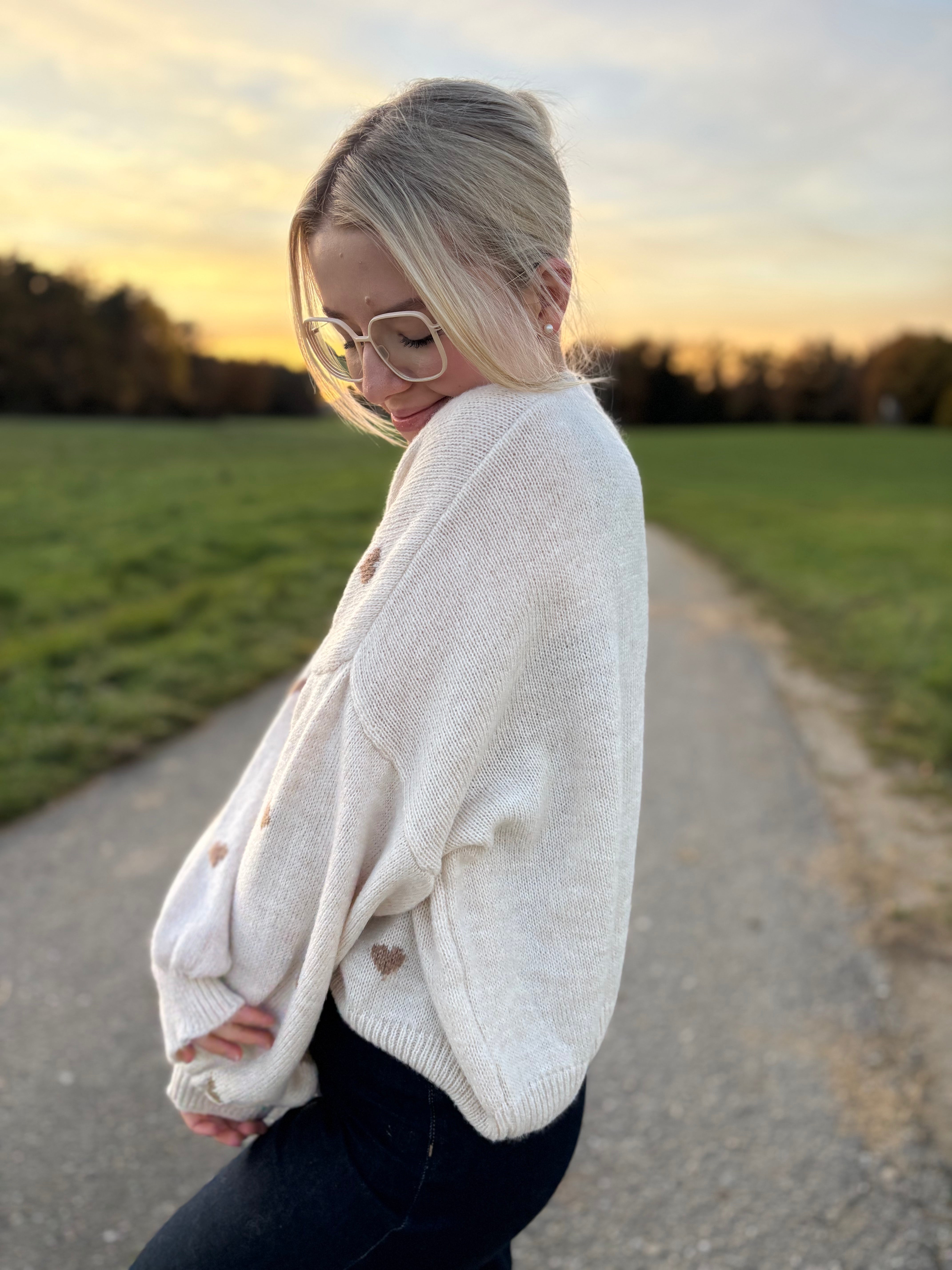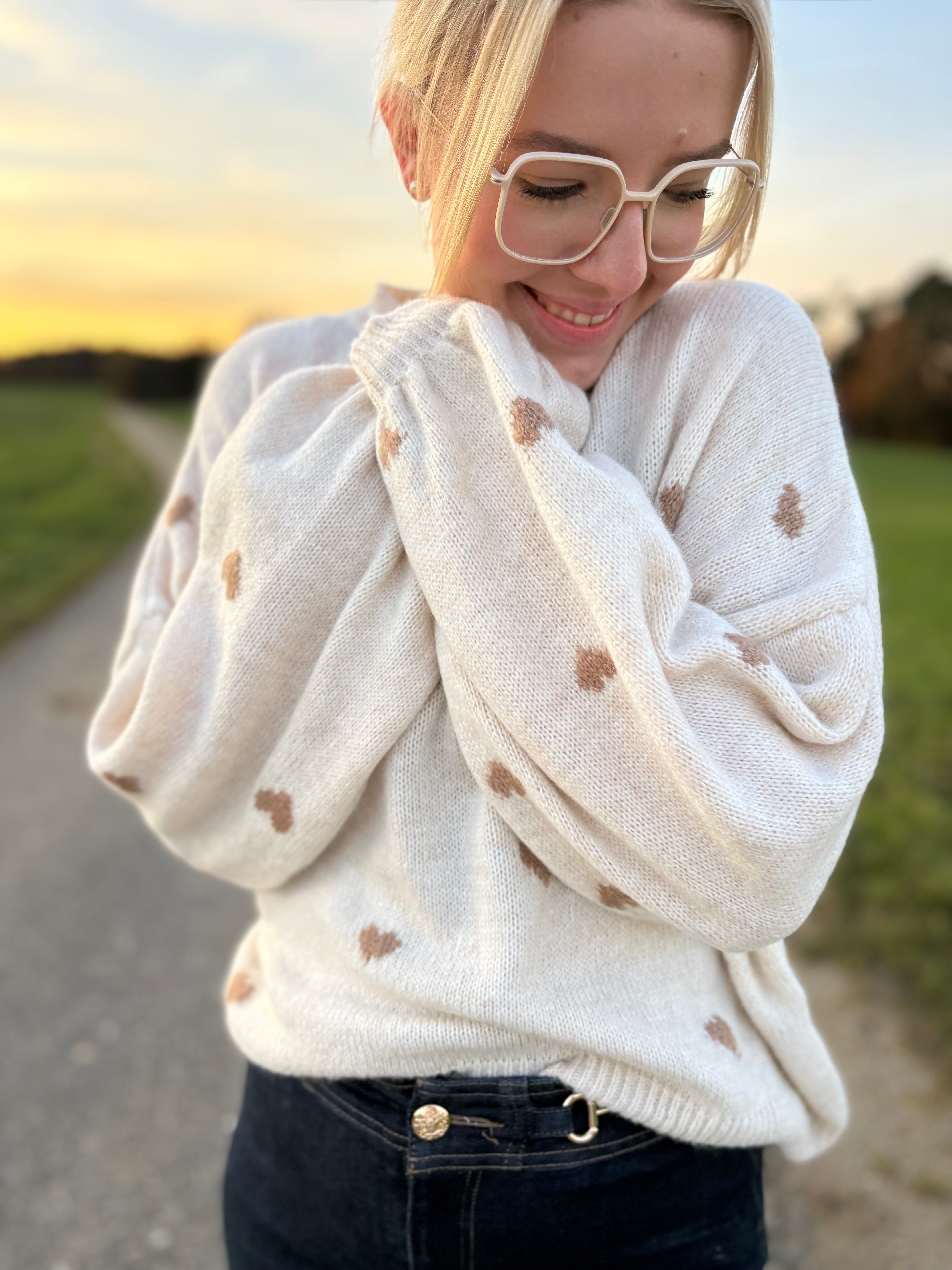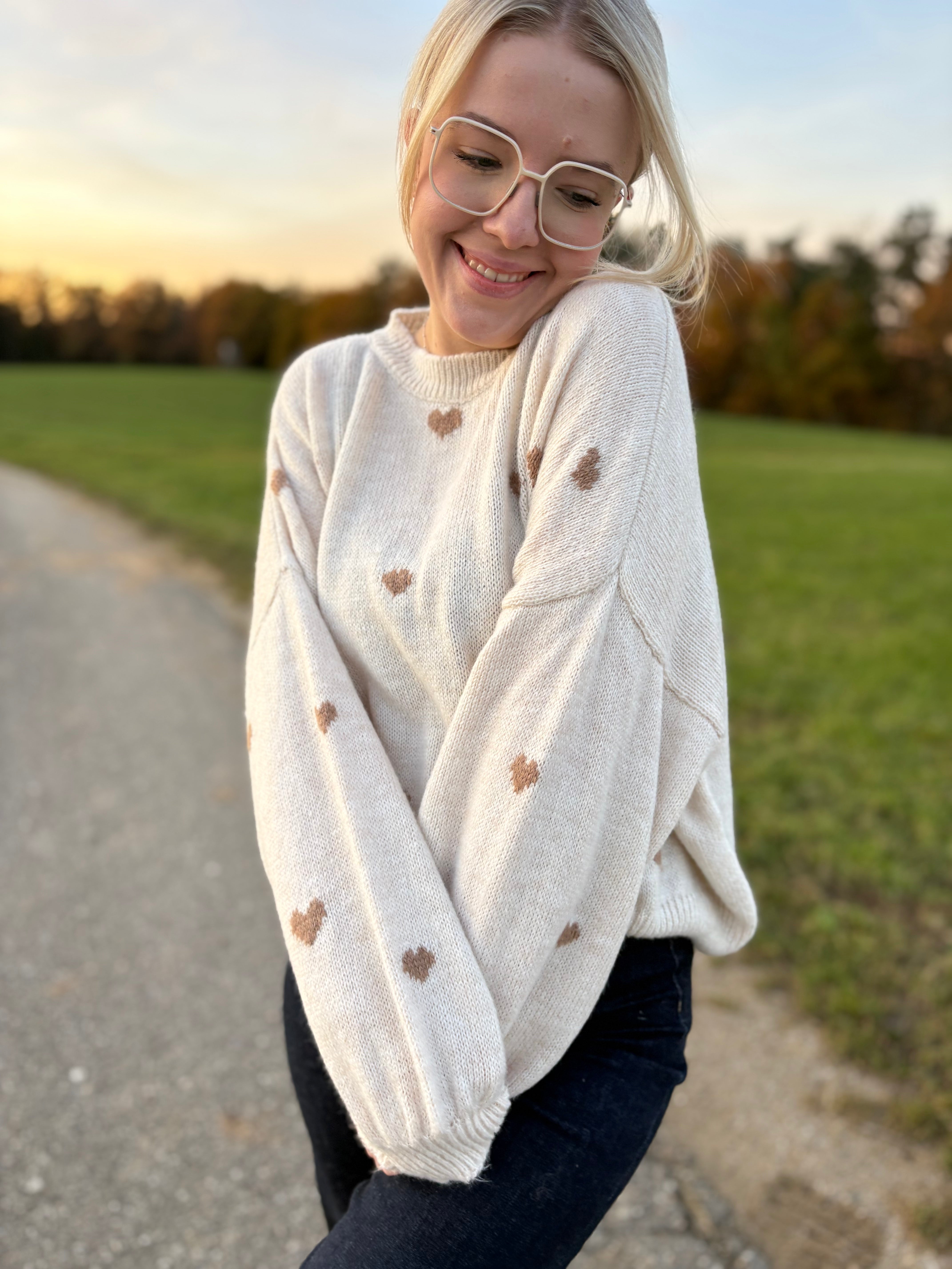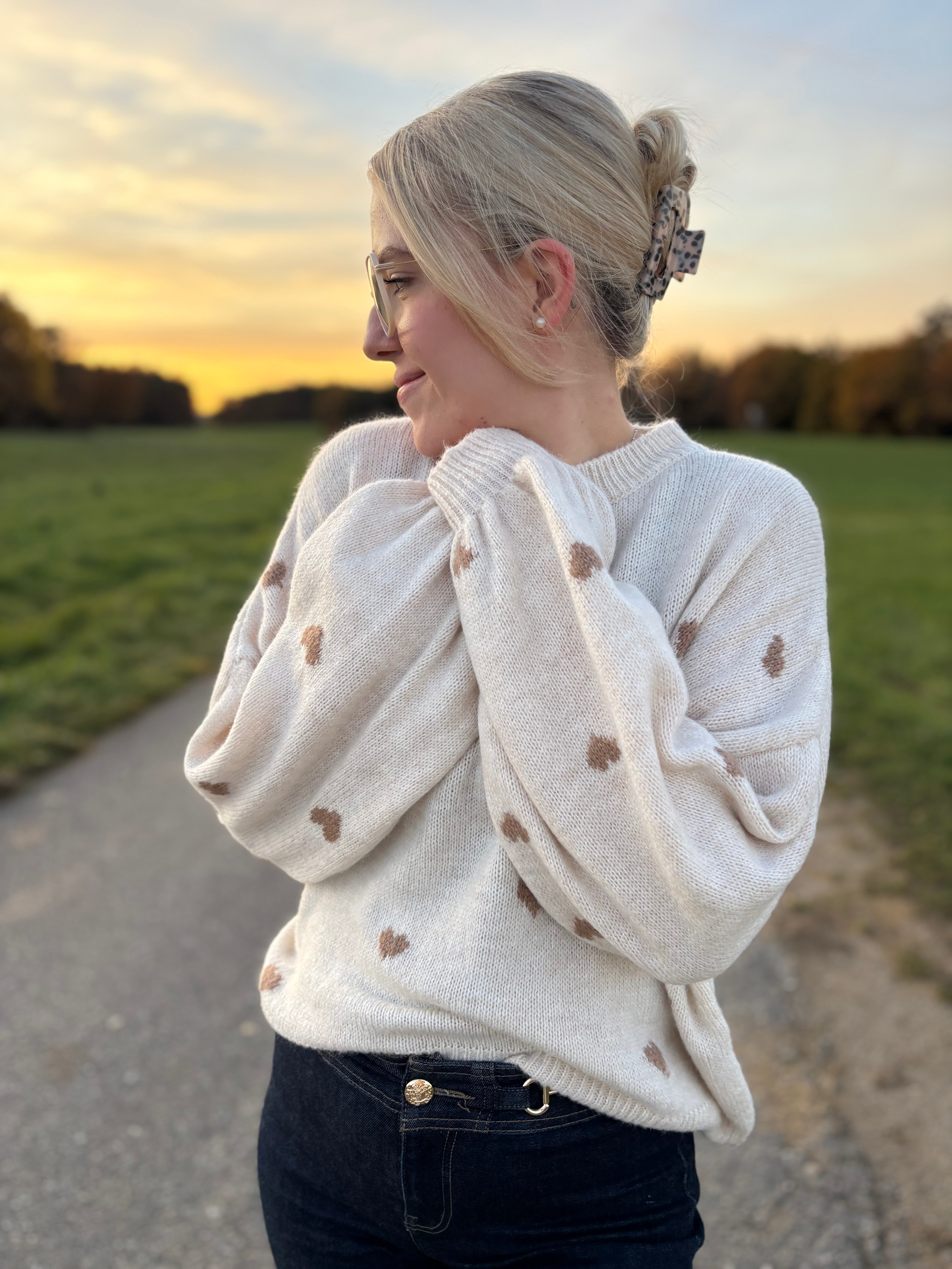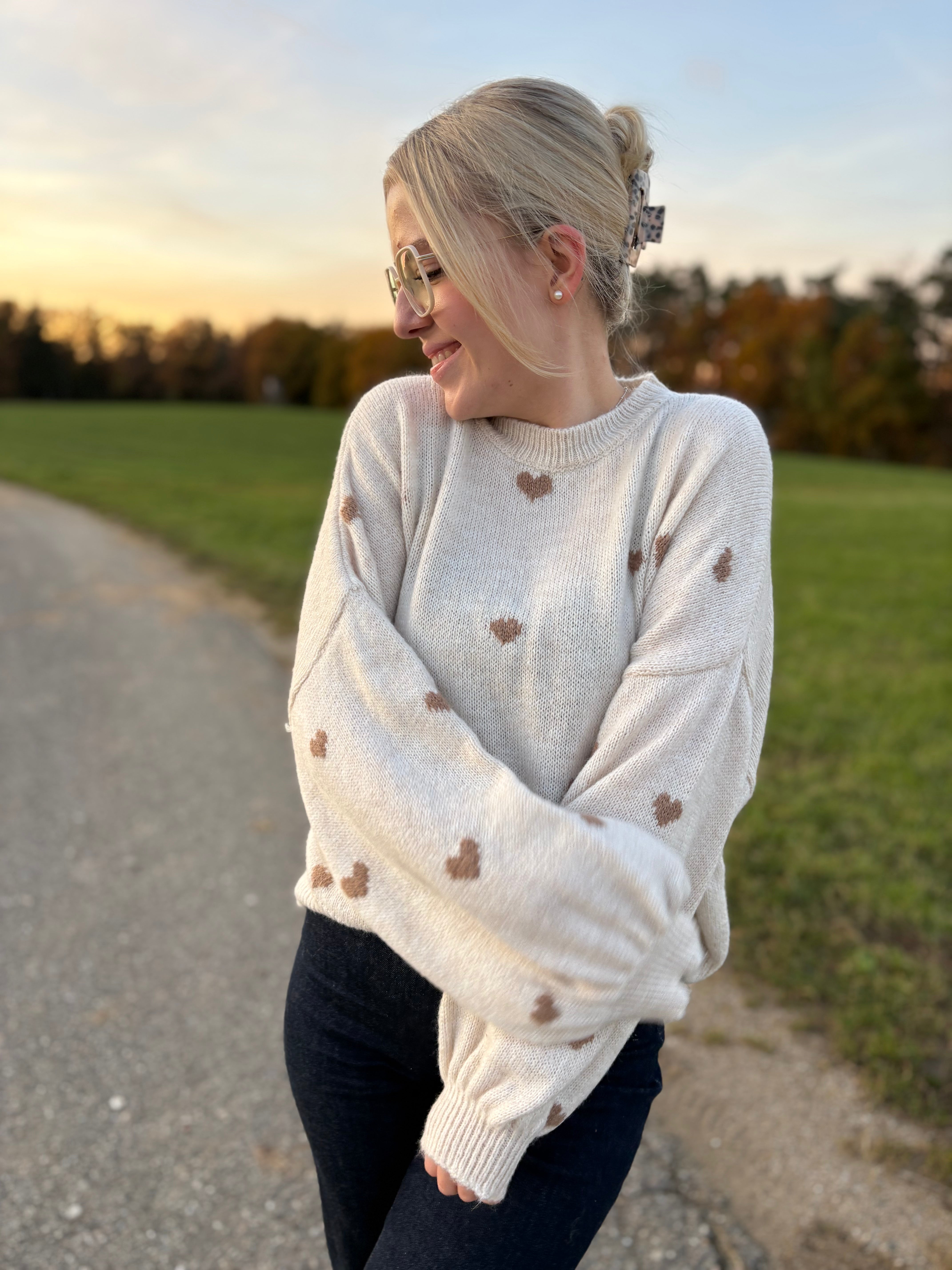 Pullover „Lola“ – Leicht Oversized mit Herzen – Made in Italy