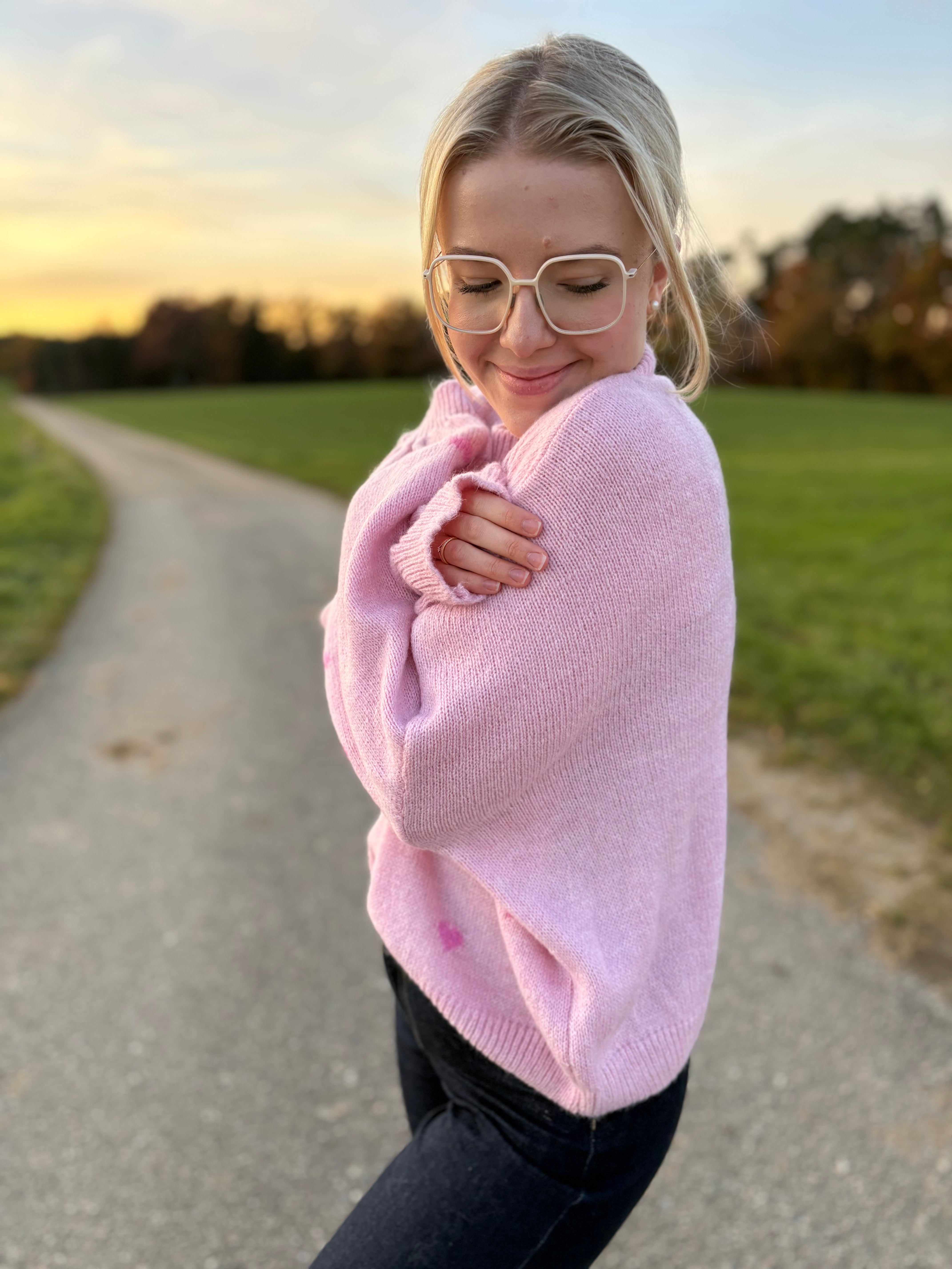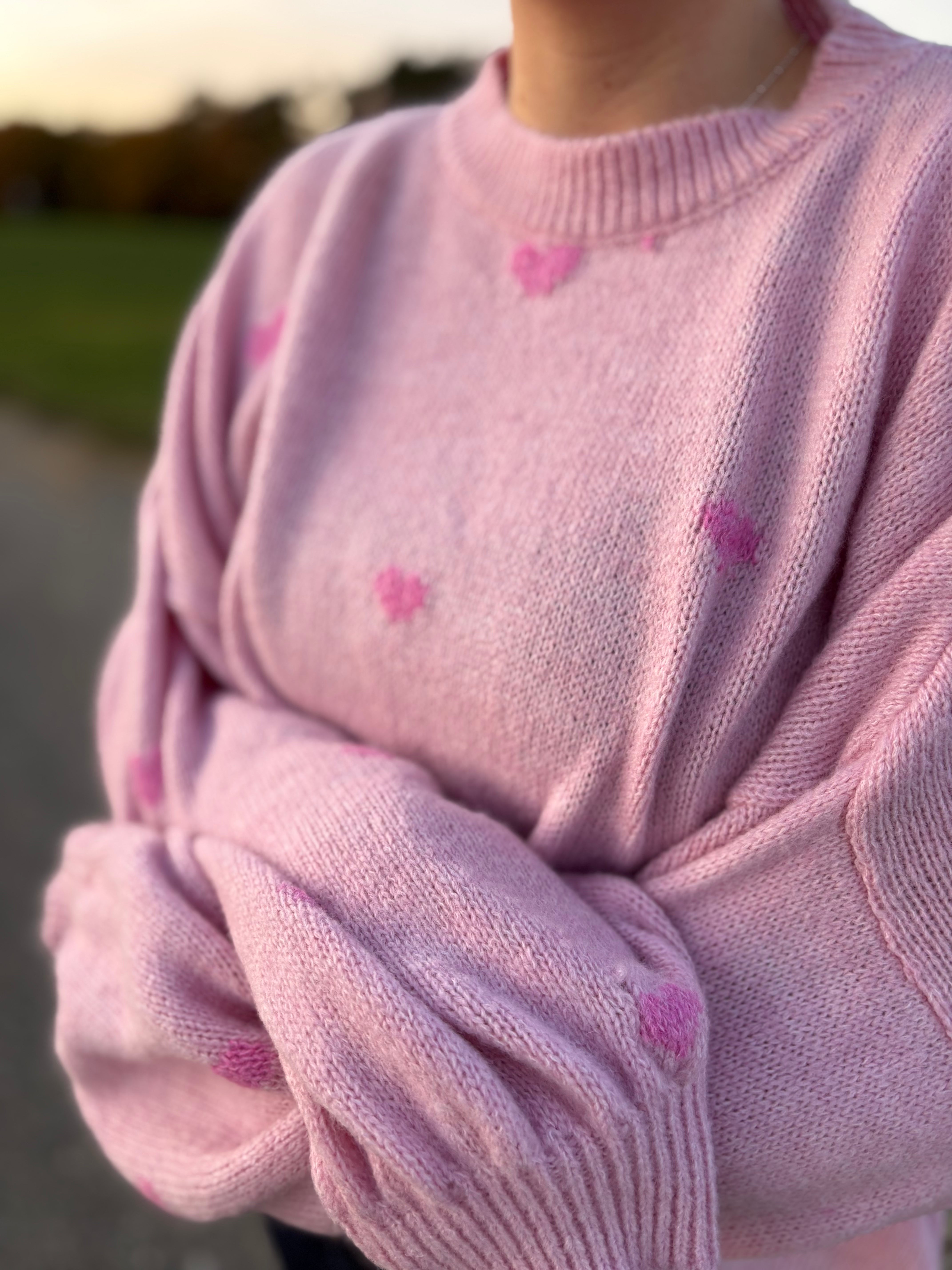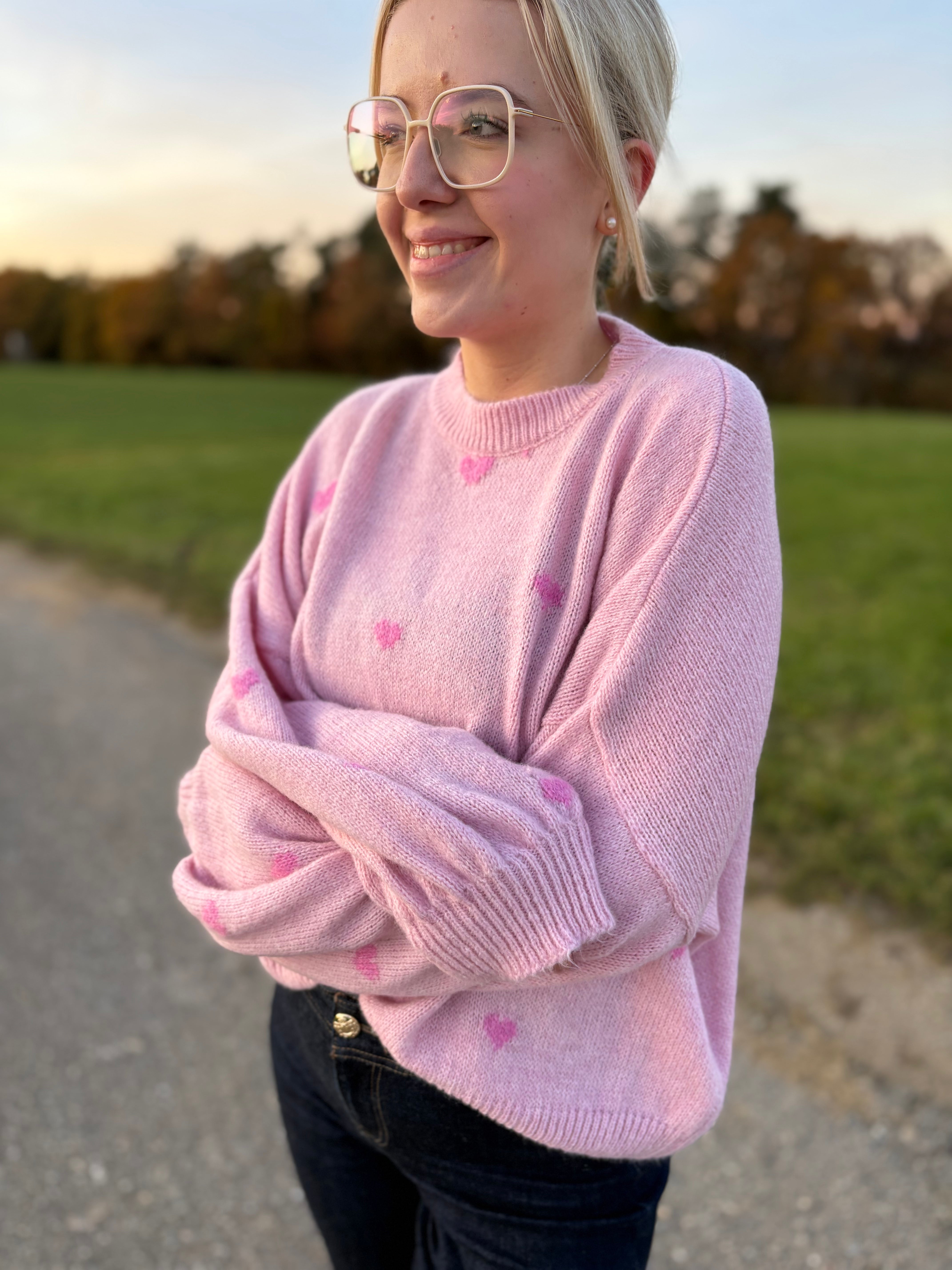 Pullover „Lola“ – Rosa Leicht Oversized mit Herzen – Made in Italy