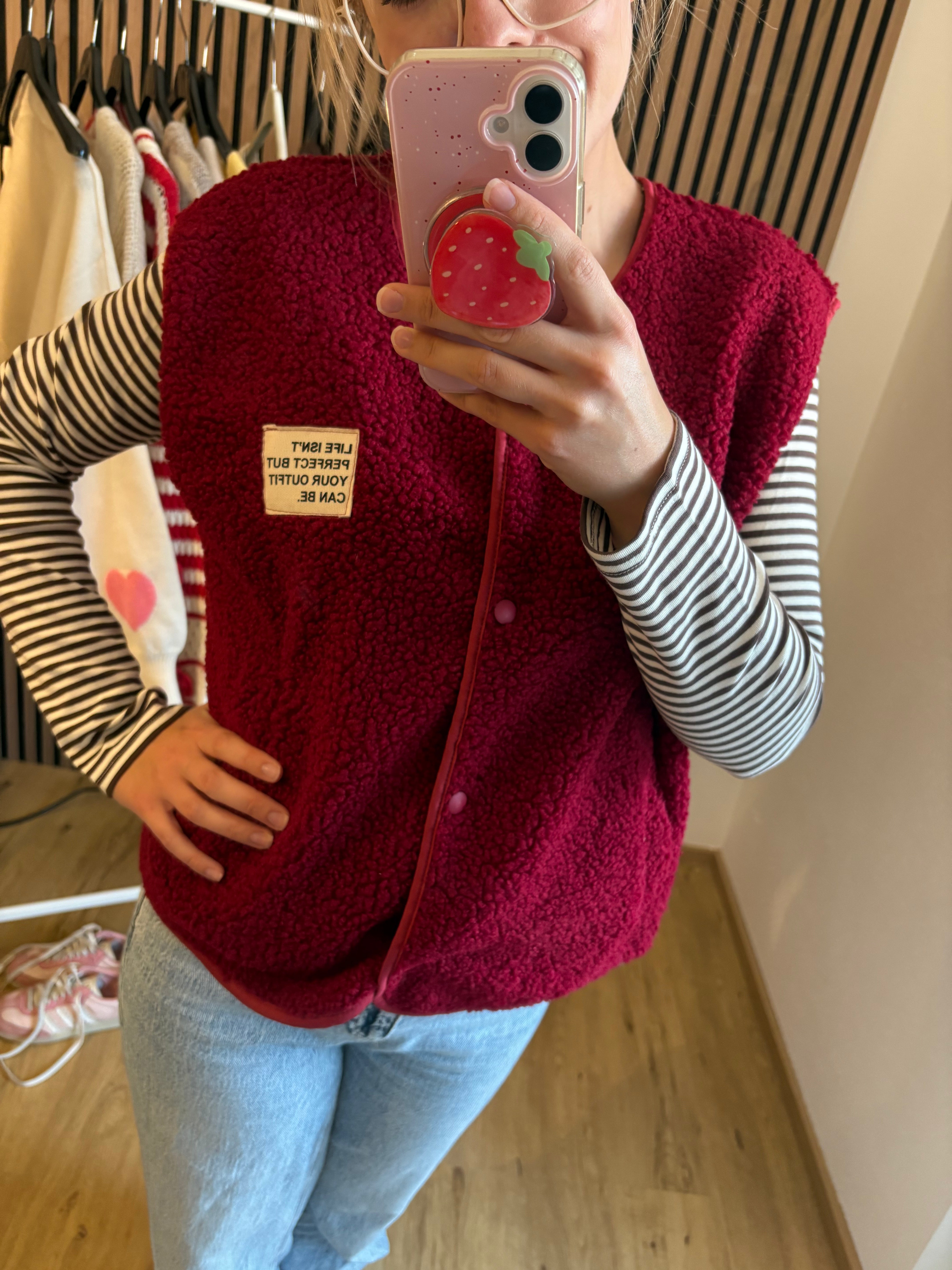 Teddy Weste Mila Bordeaux Ärmellos Teddystoff Made in Italy