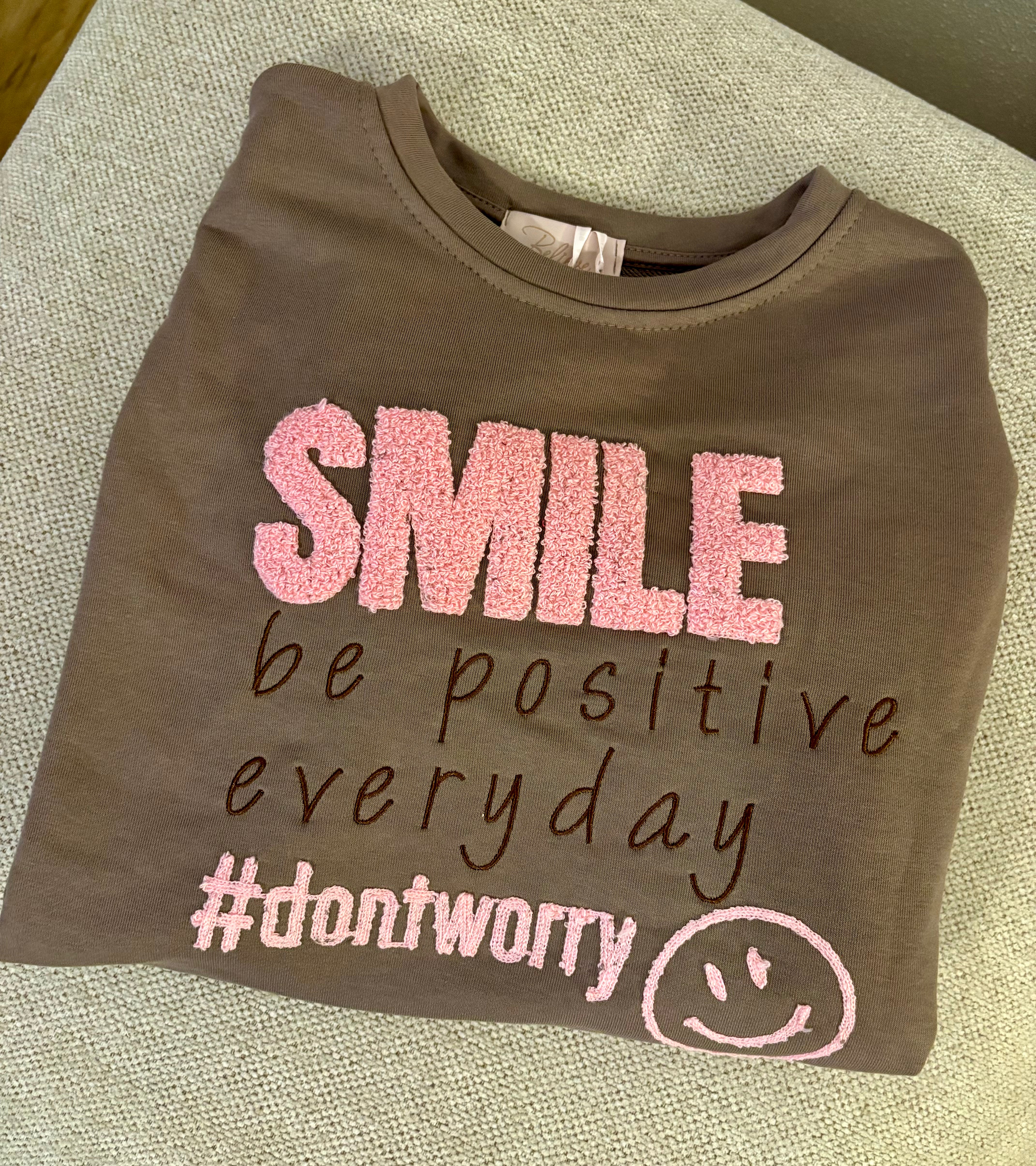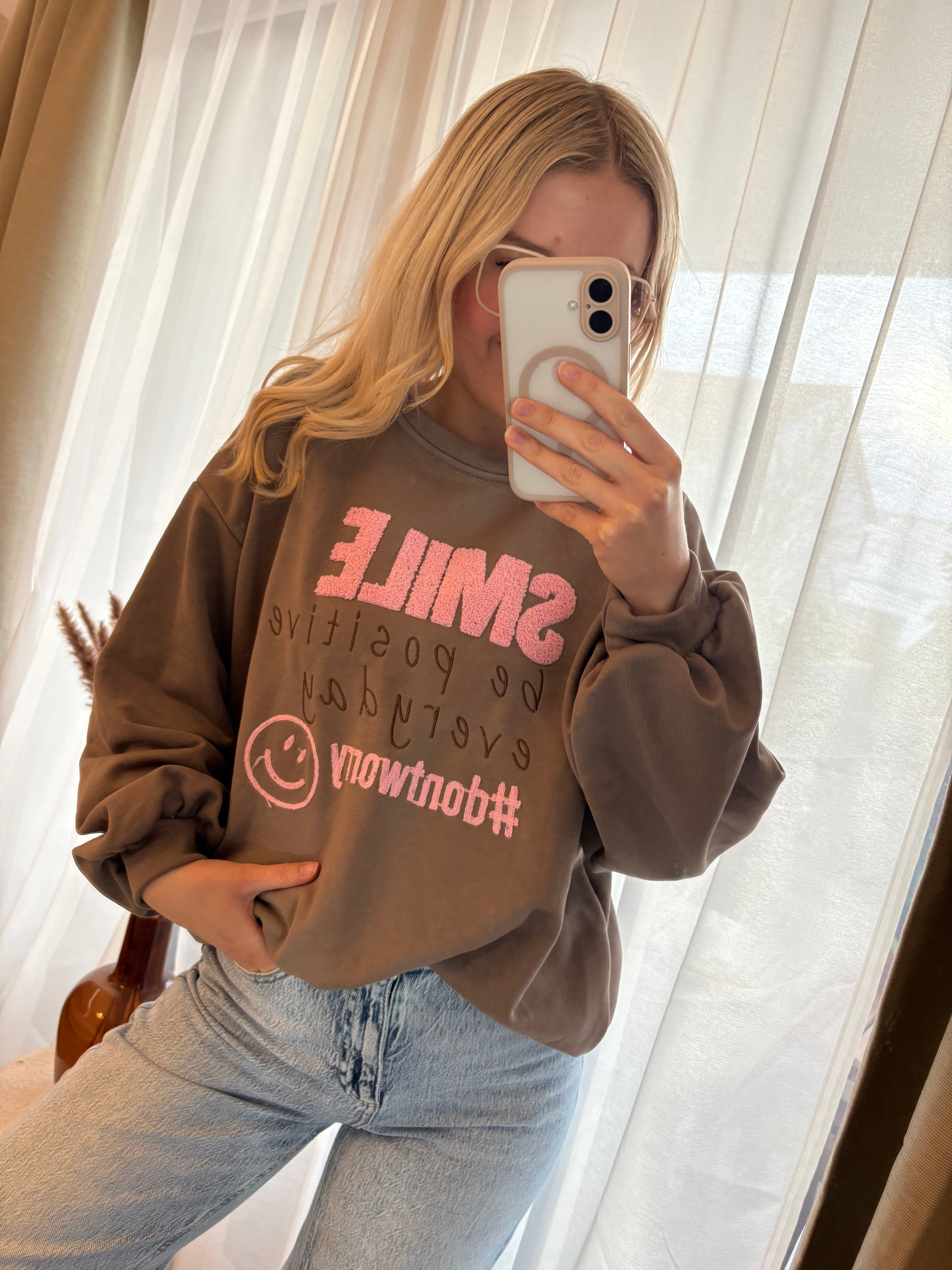 SMile be positive everyday Sweater Pullover Rosa Braun #don't worry