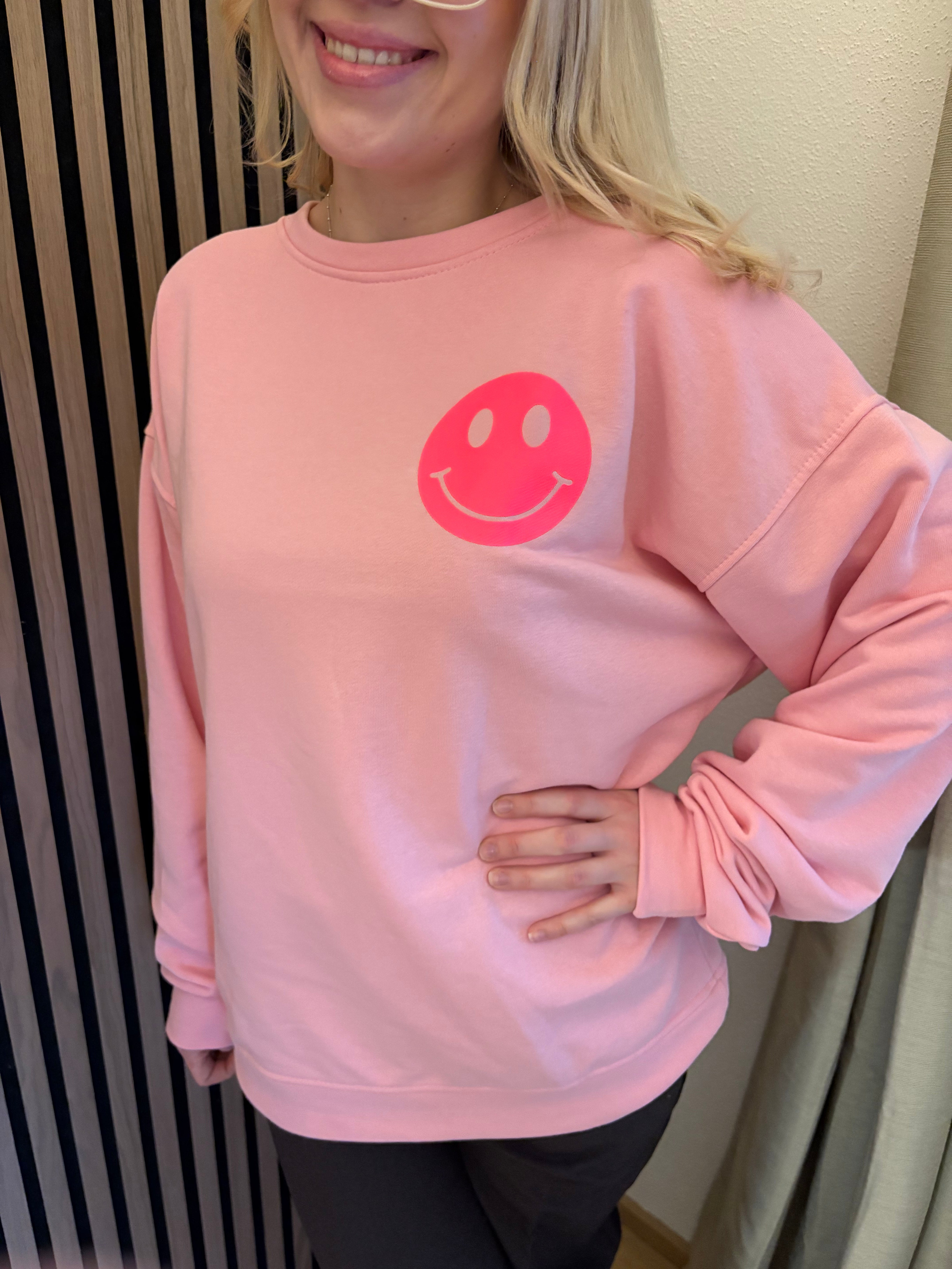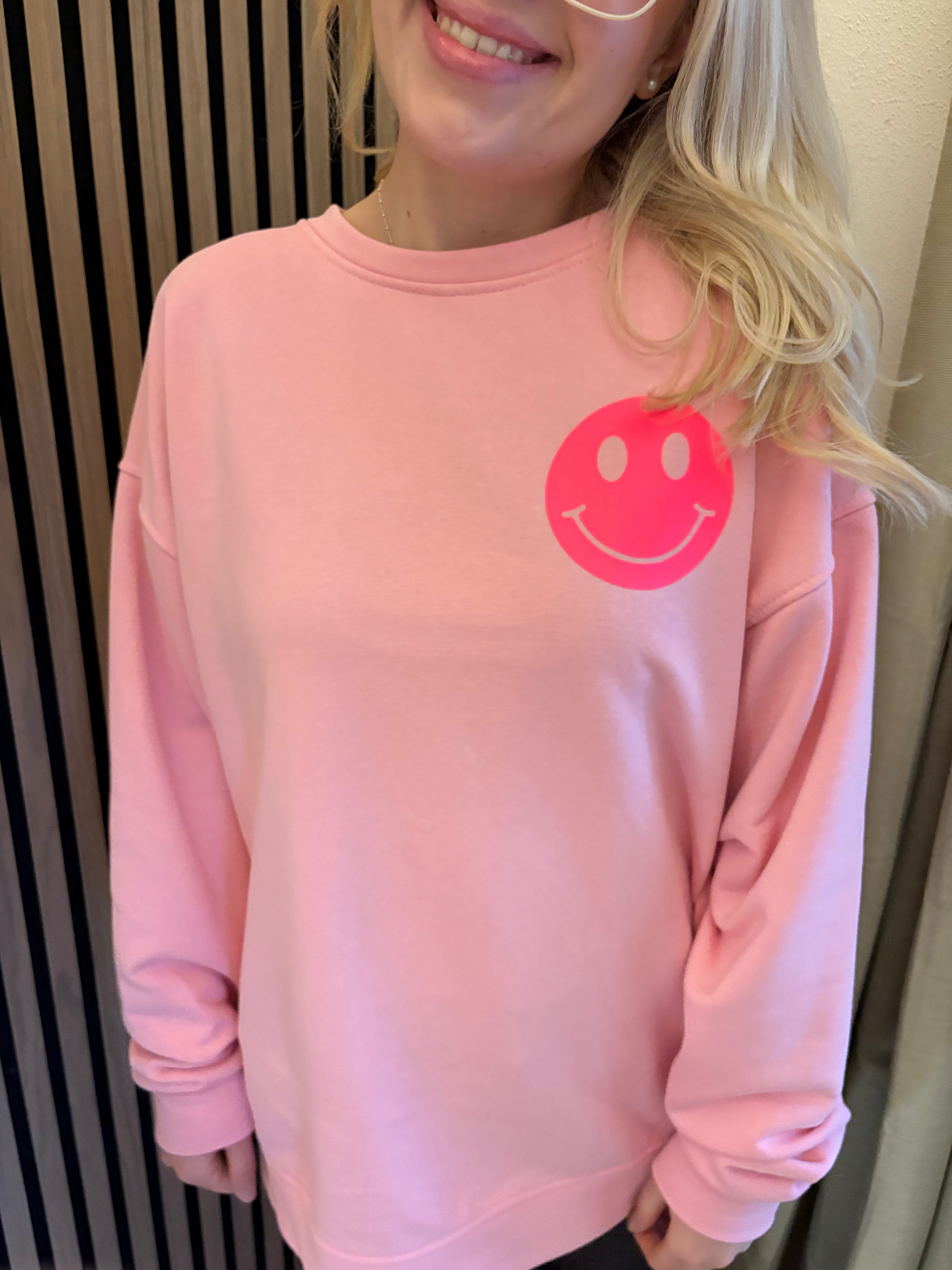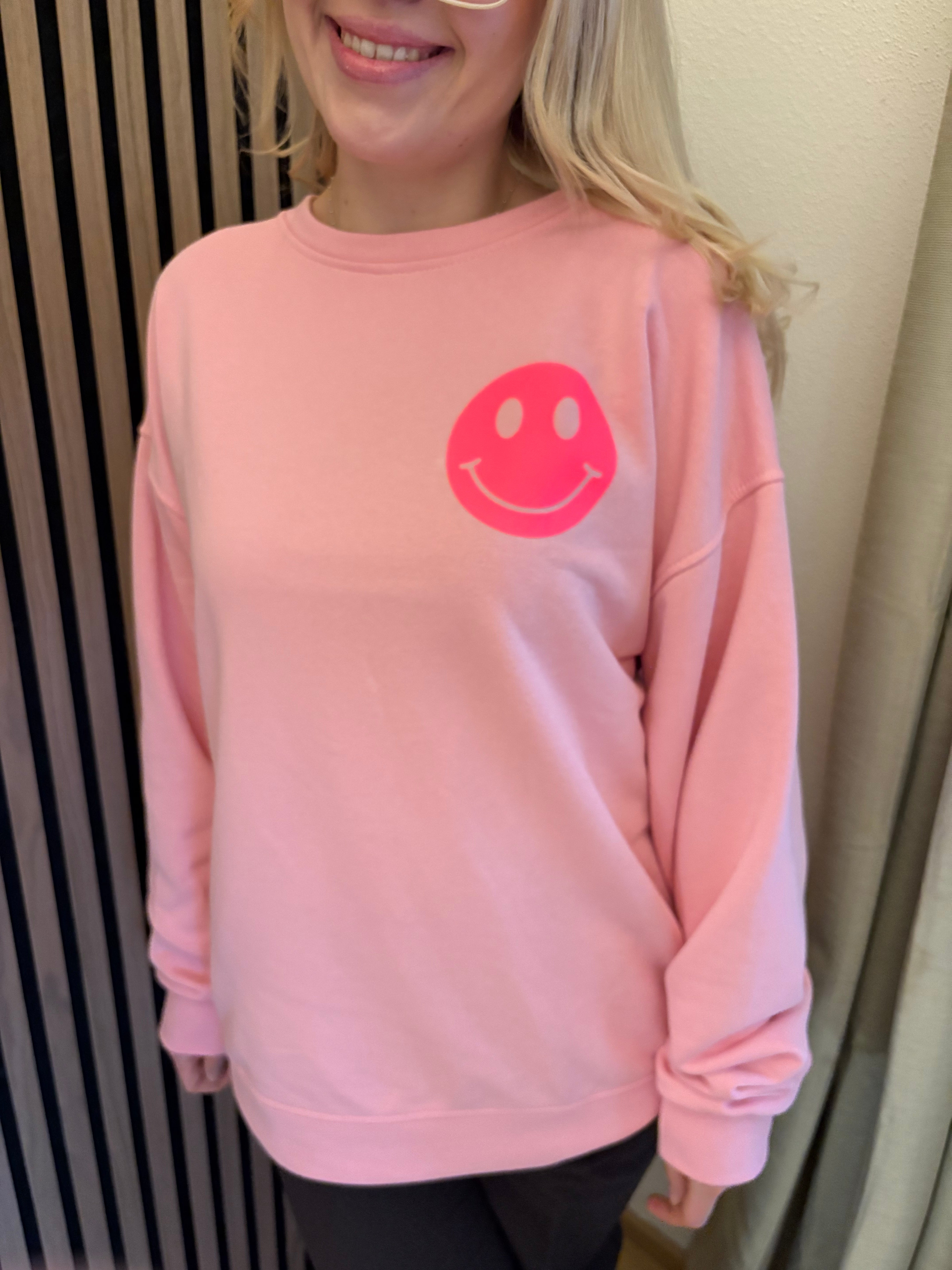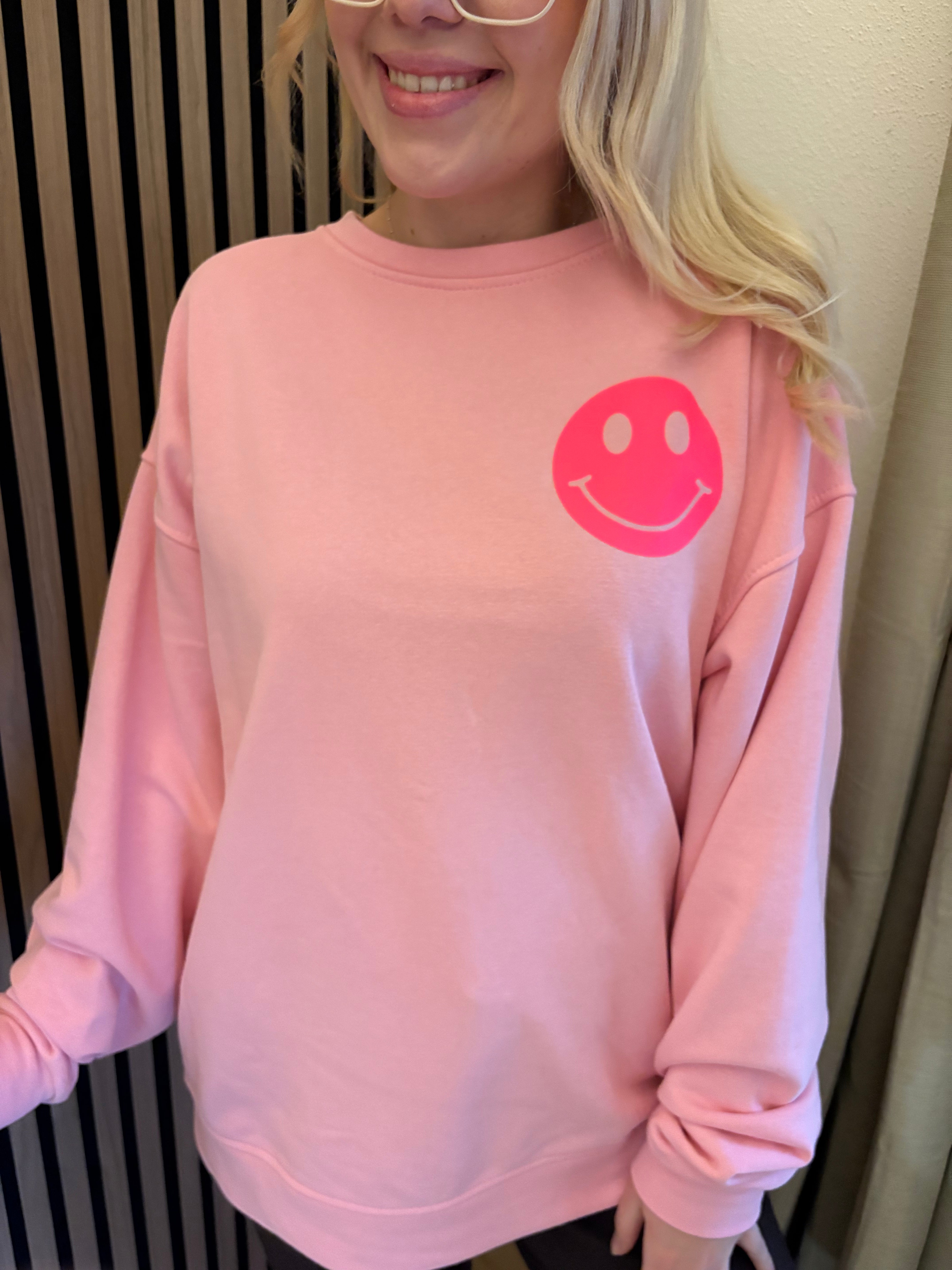 Sweater Good Vibes Smiley Sweatshirt Rosa Neon Backprint