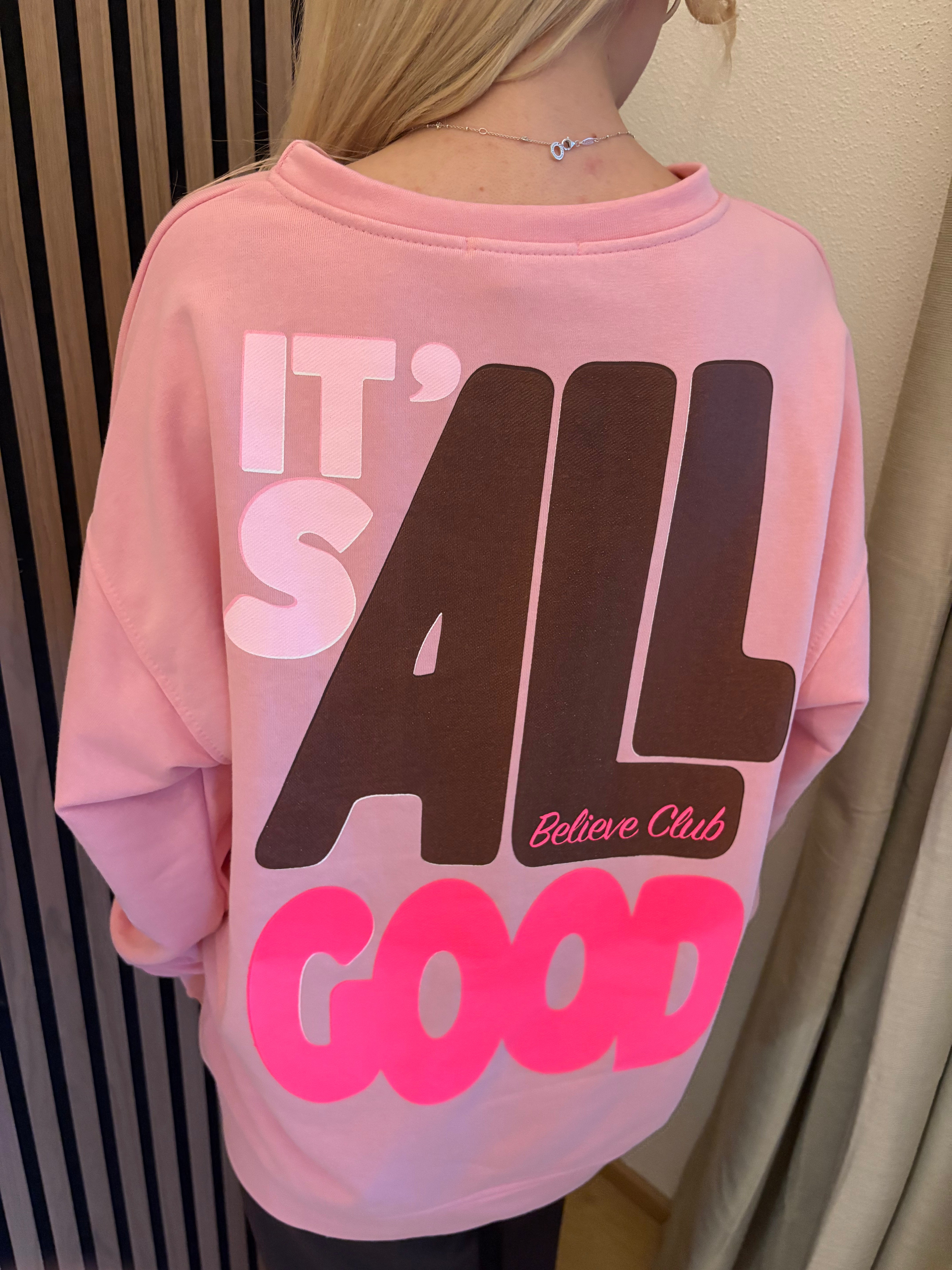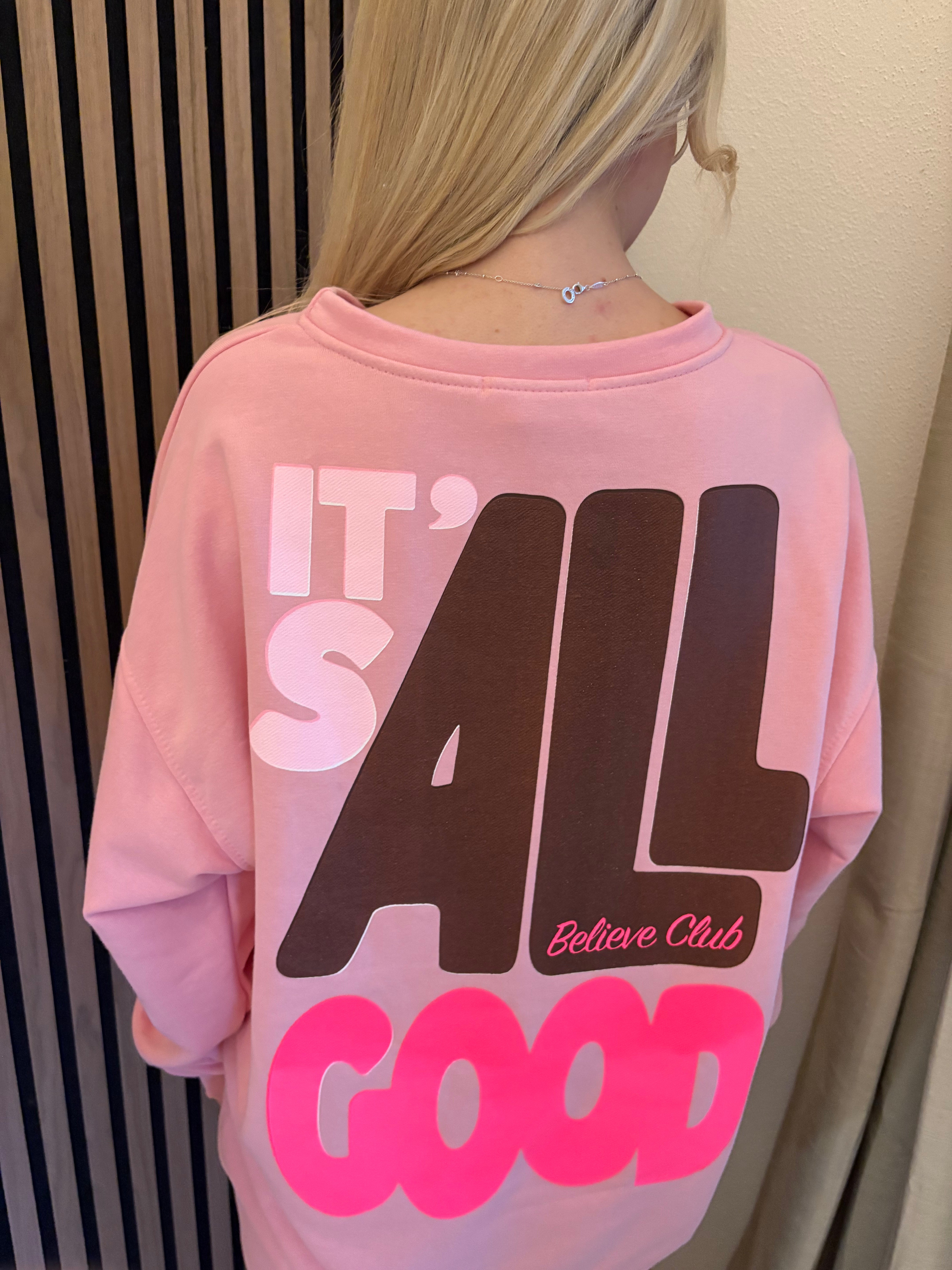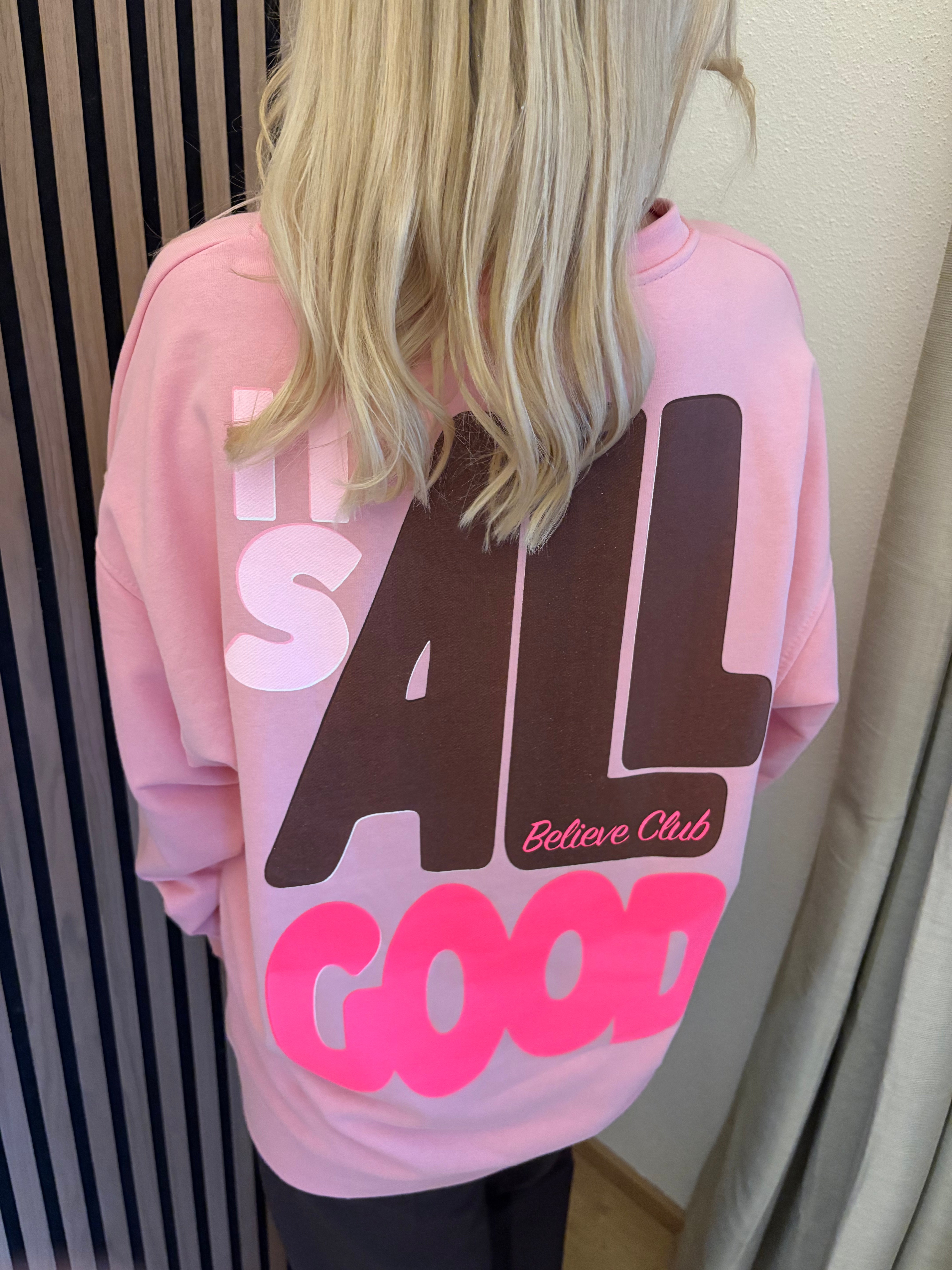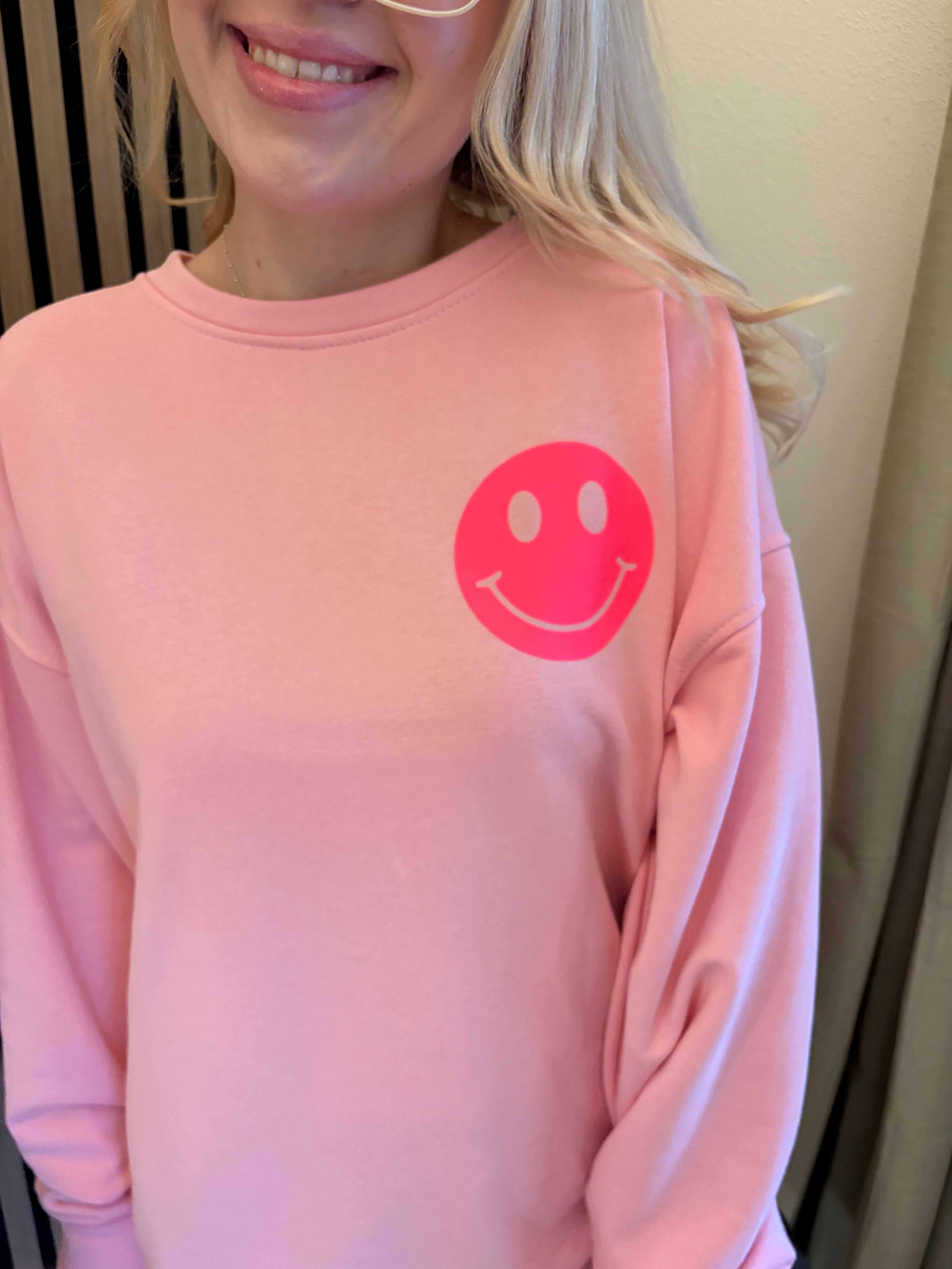 Sweater Good Vibes Smiley Sweatshirt Rosa Neon Backprint