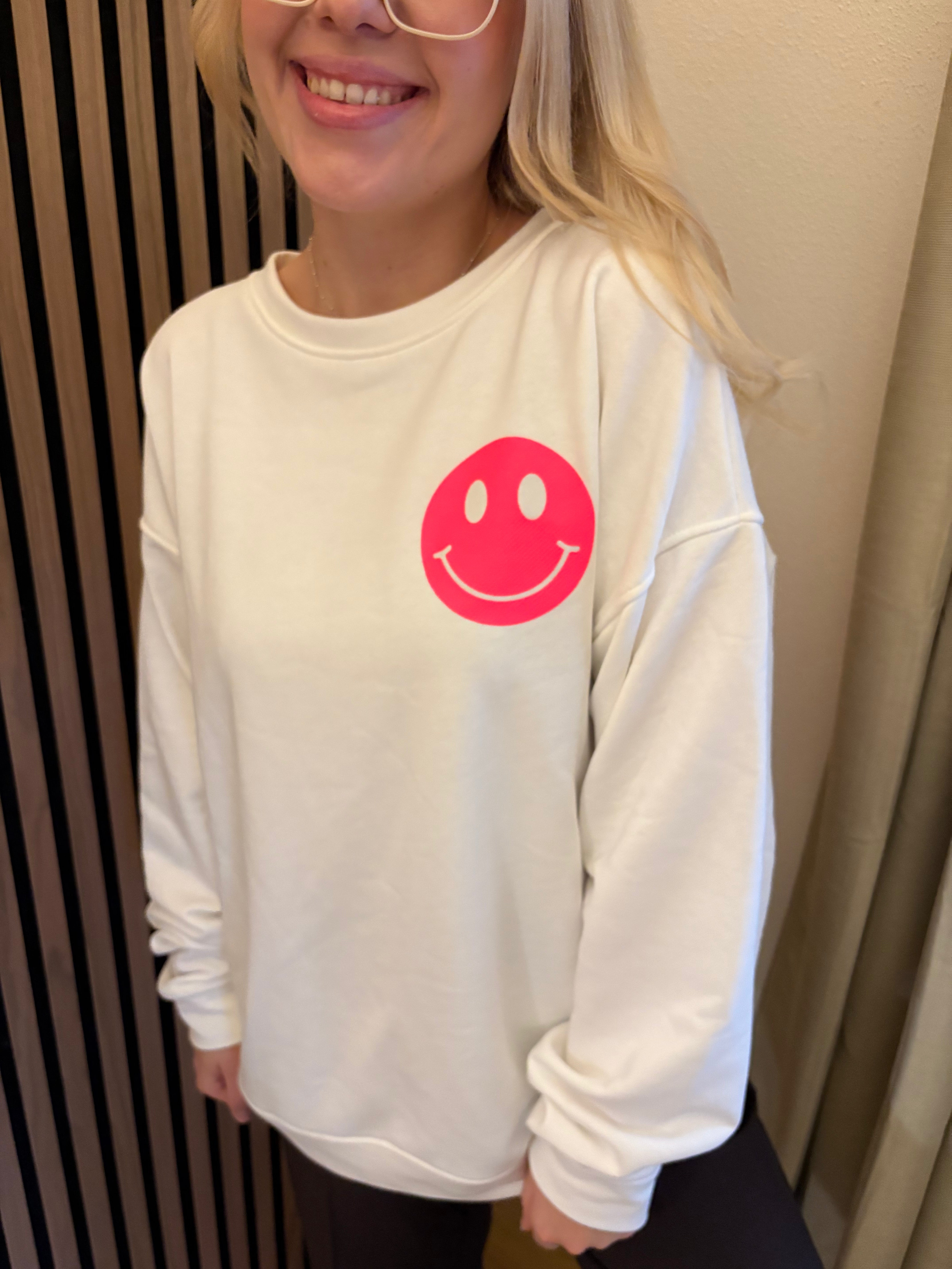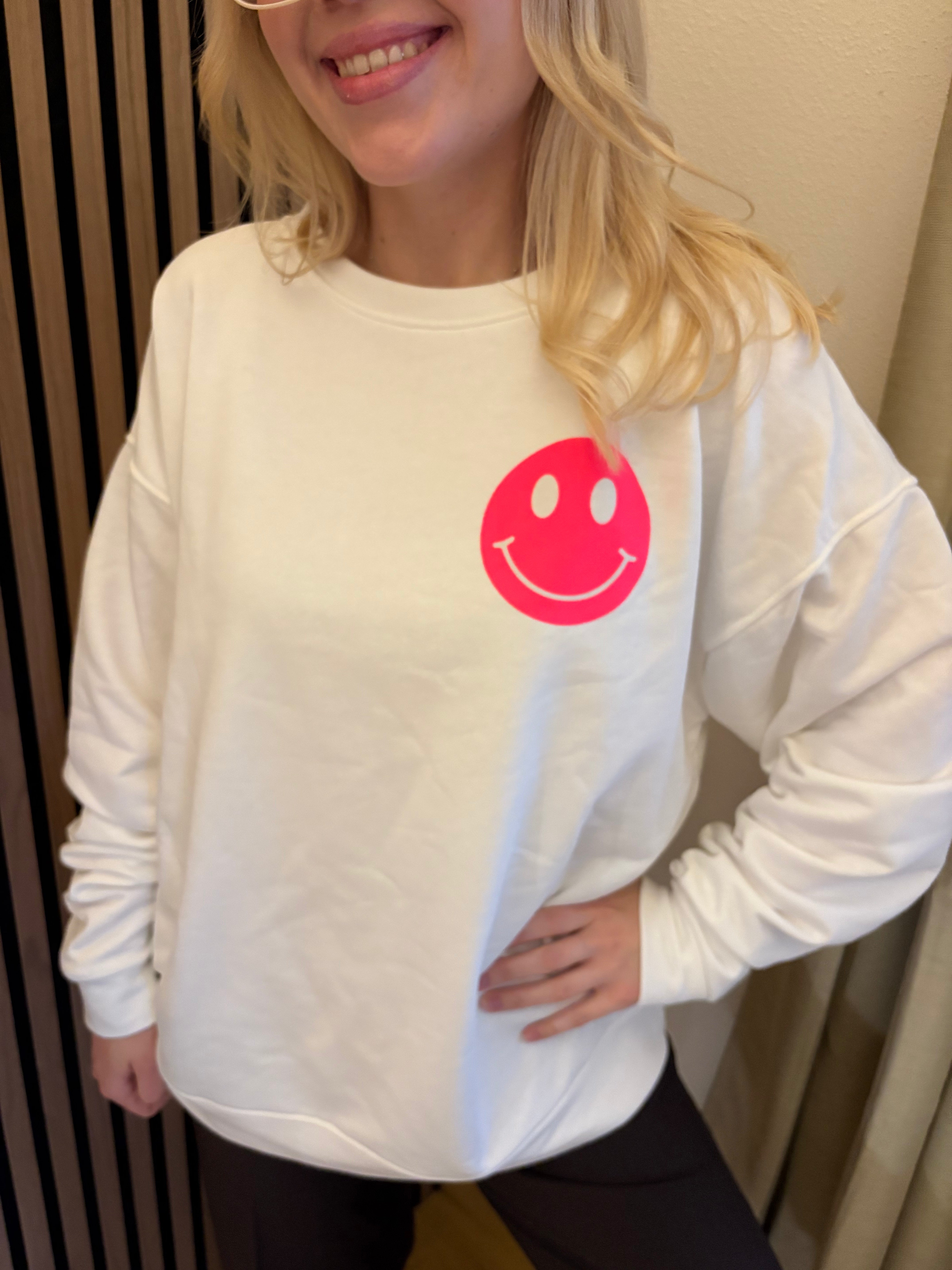 Sweater Good Vibes Smiley Sweatshirt Weiß Neon Backprint