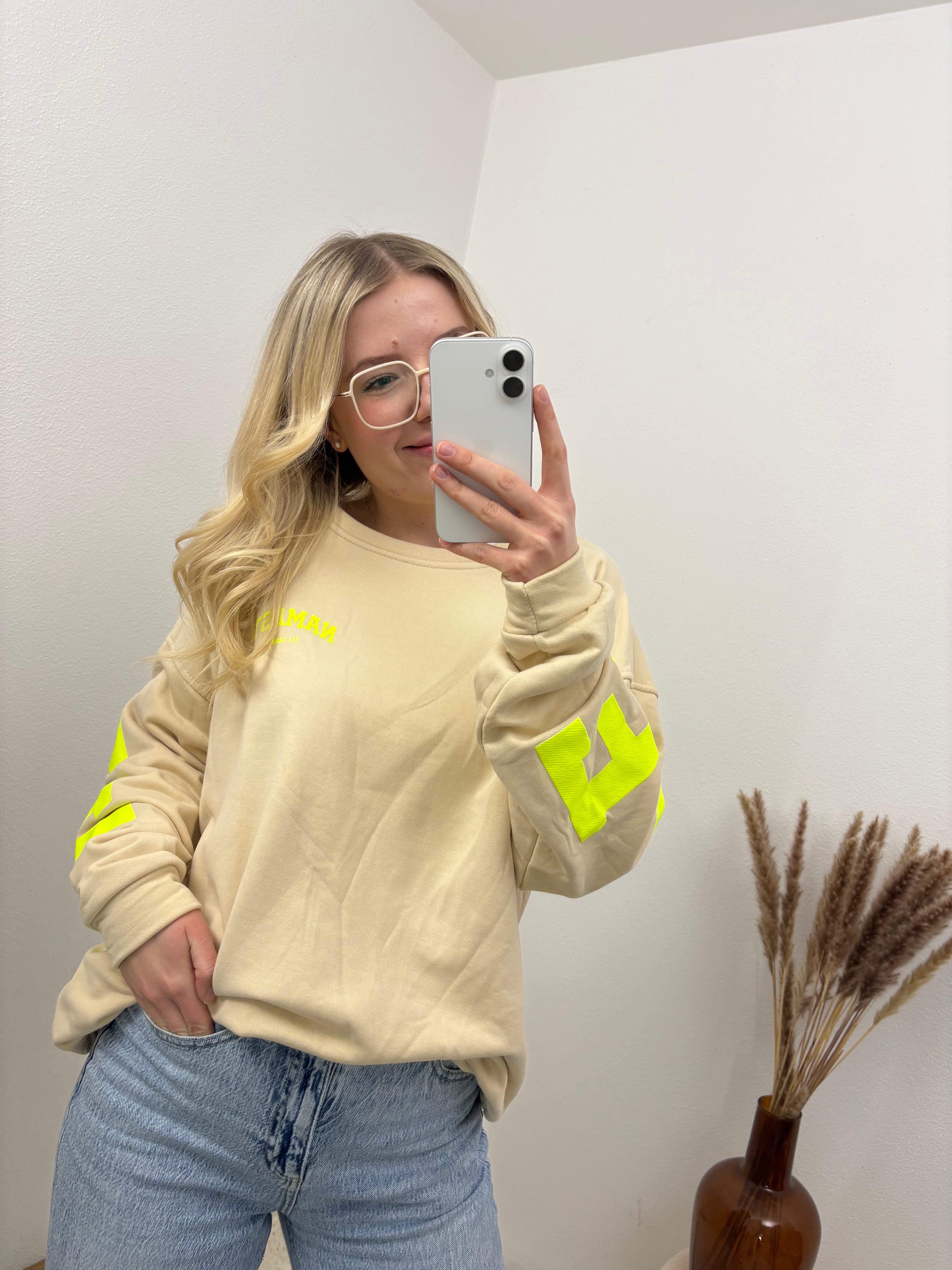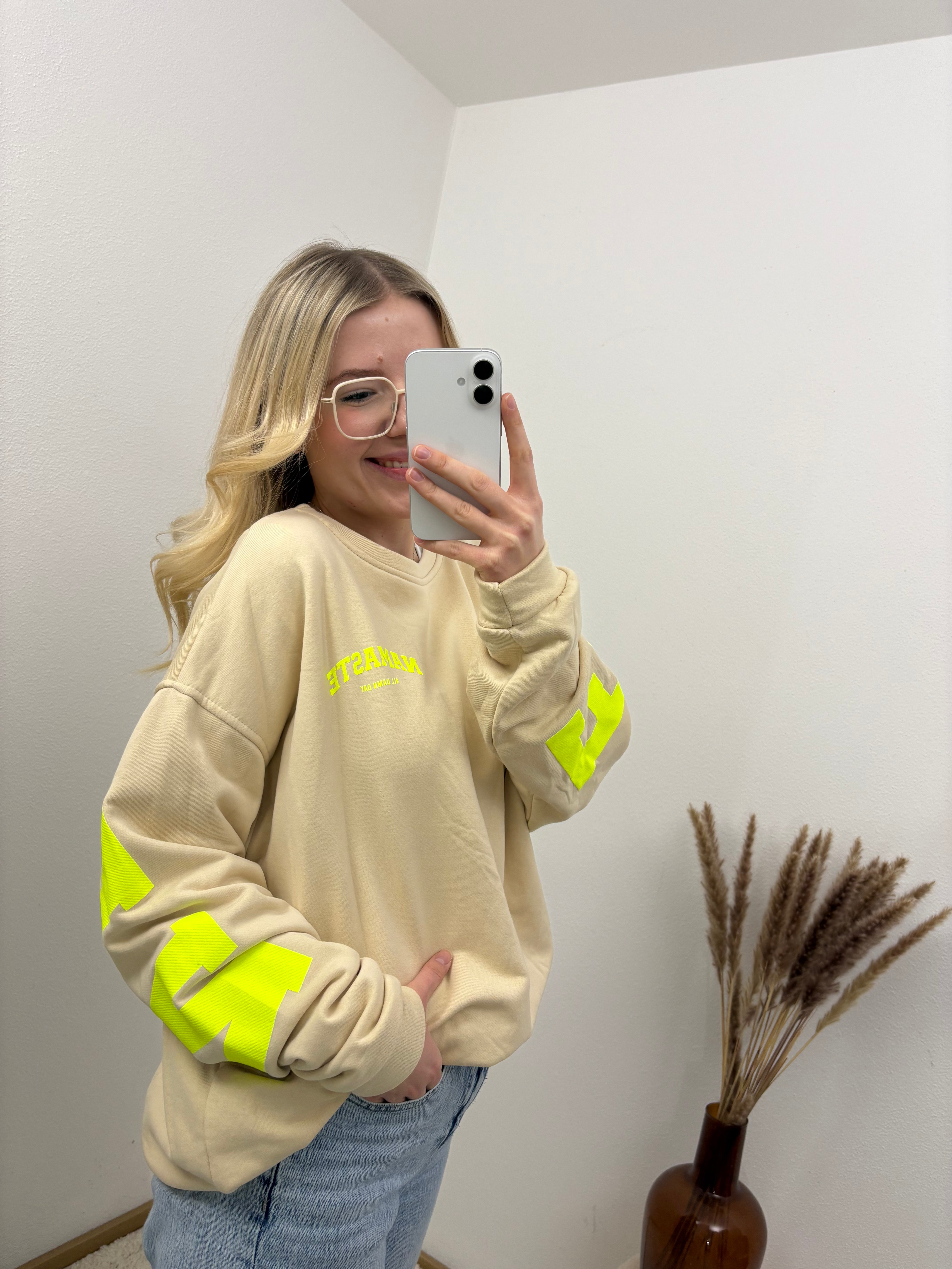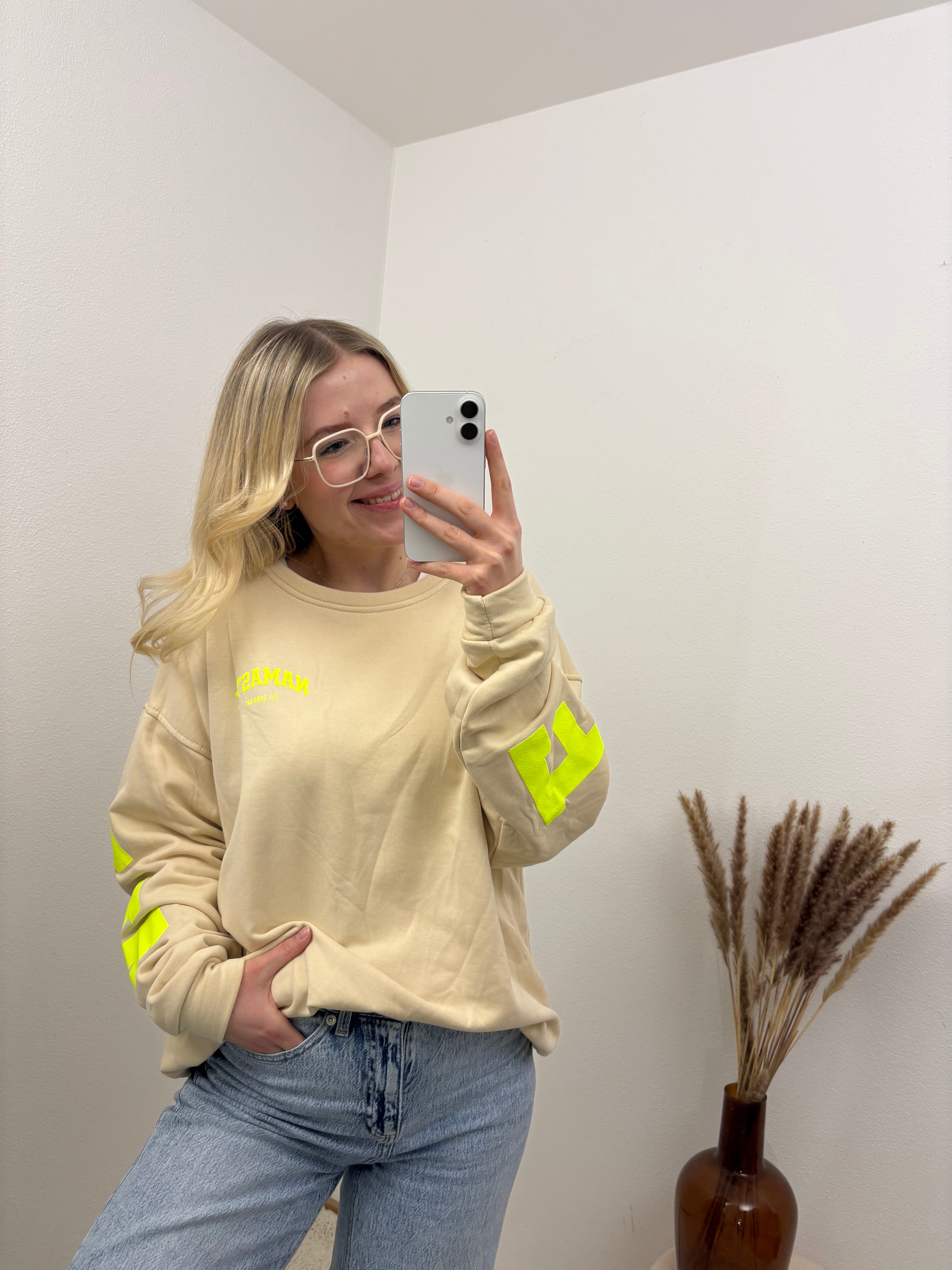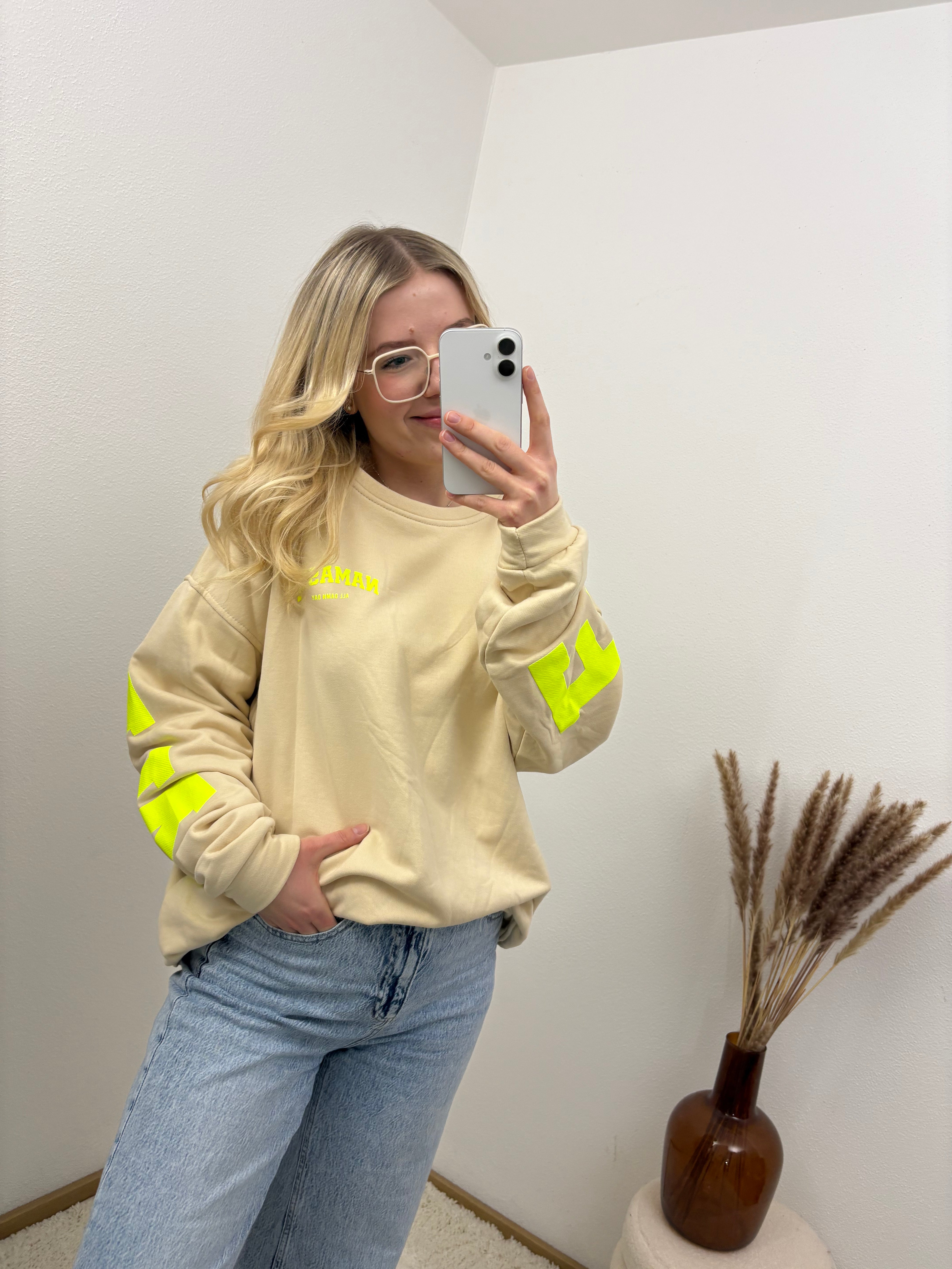 Sweater Namaste Sweatshirt Pullover Beige Gelb Neon