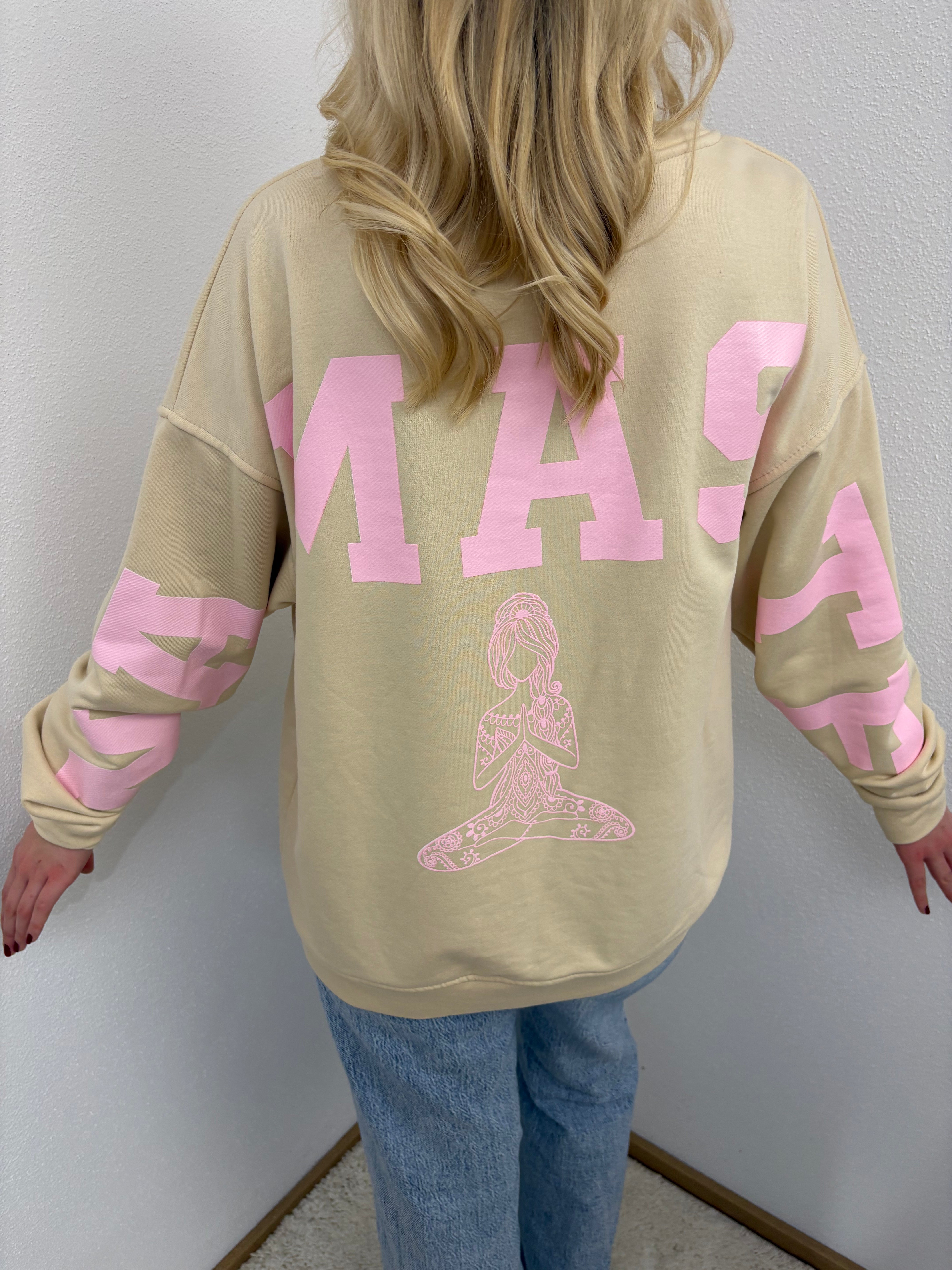 Sweater Namaste Sweatshirt Pullover Beige Rosa