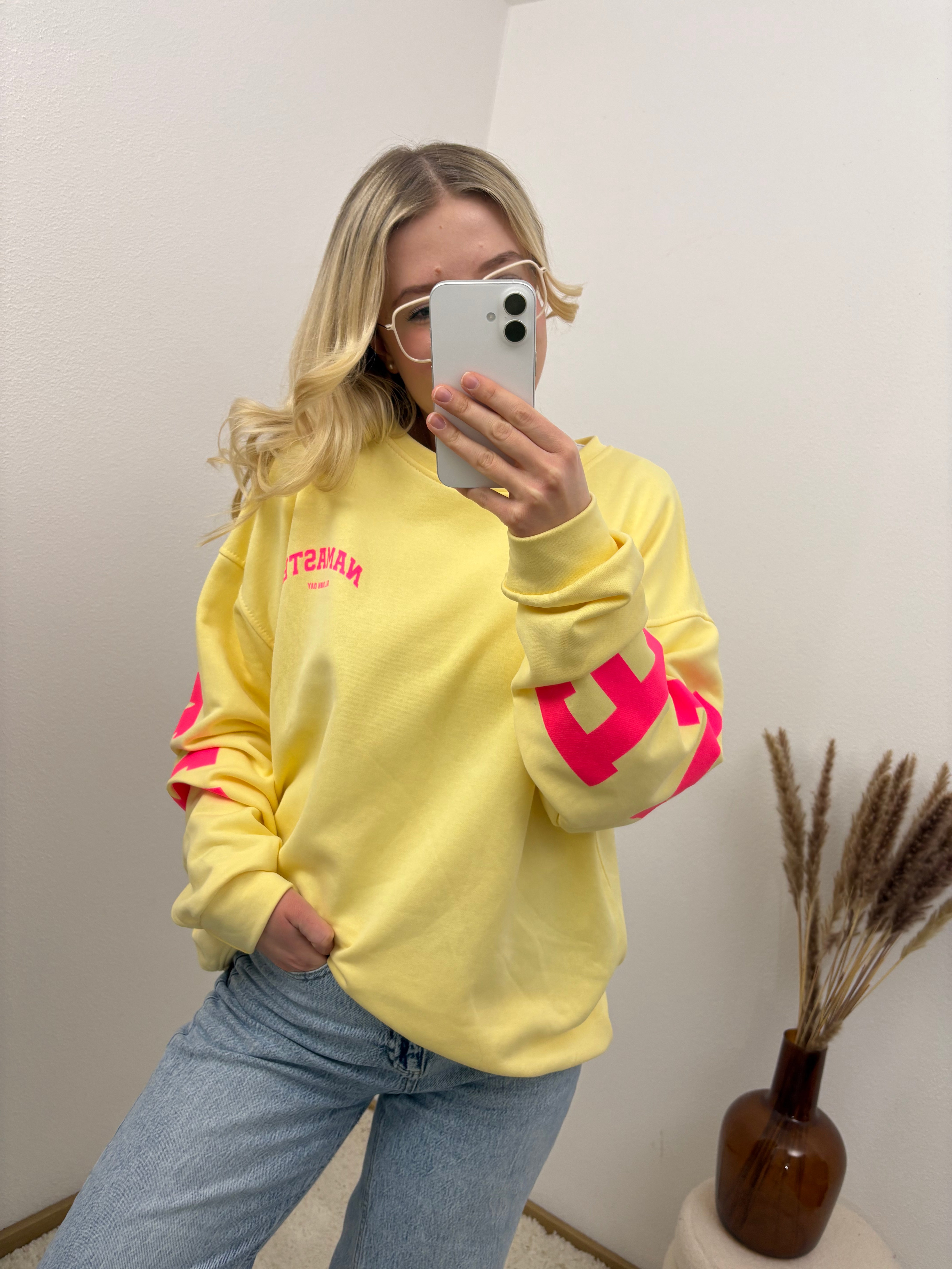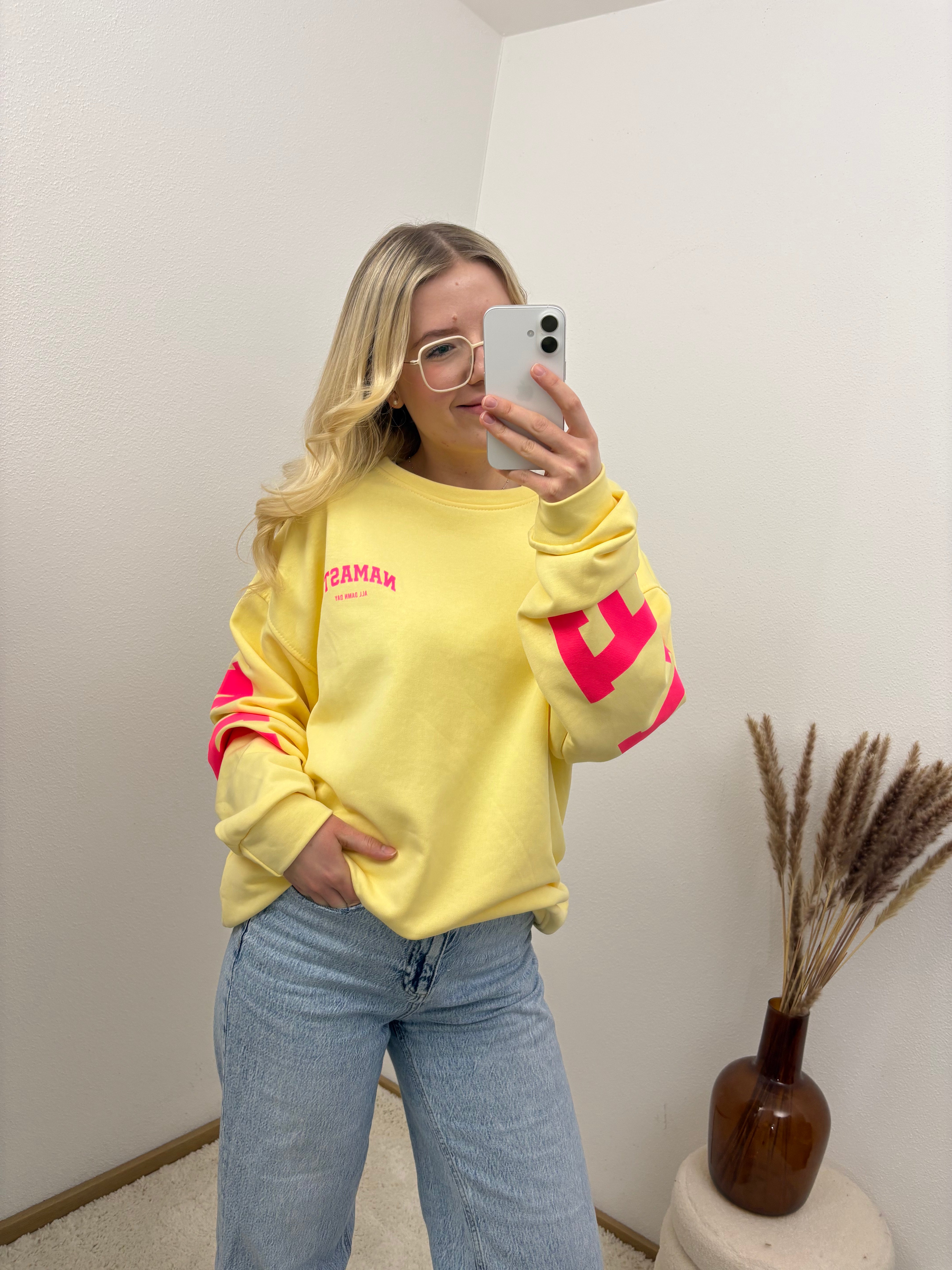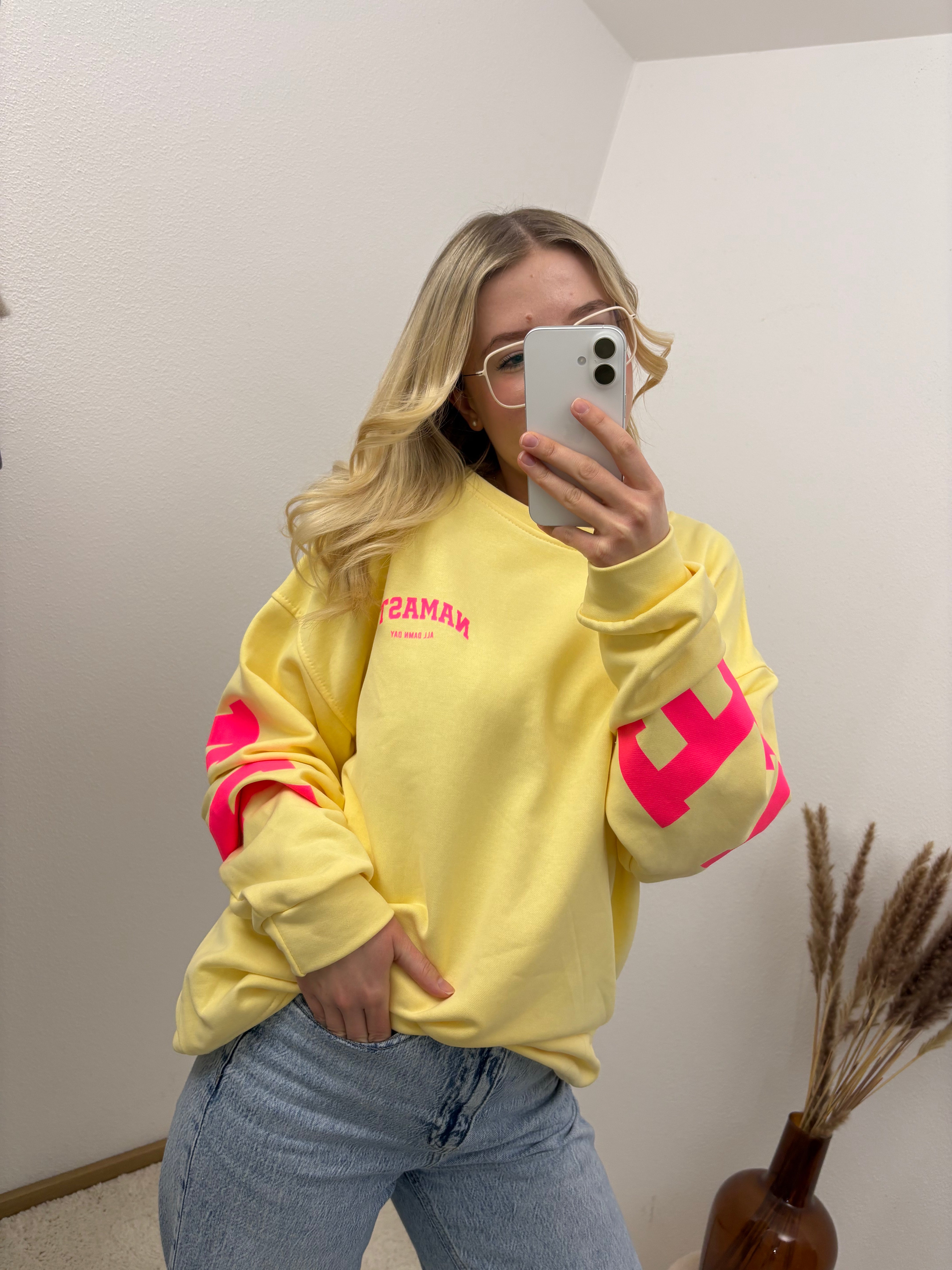 Sweater Namaste Sweatshirt Pullover Gelb Pink