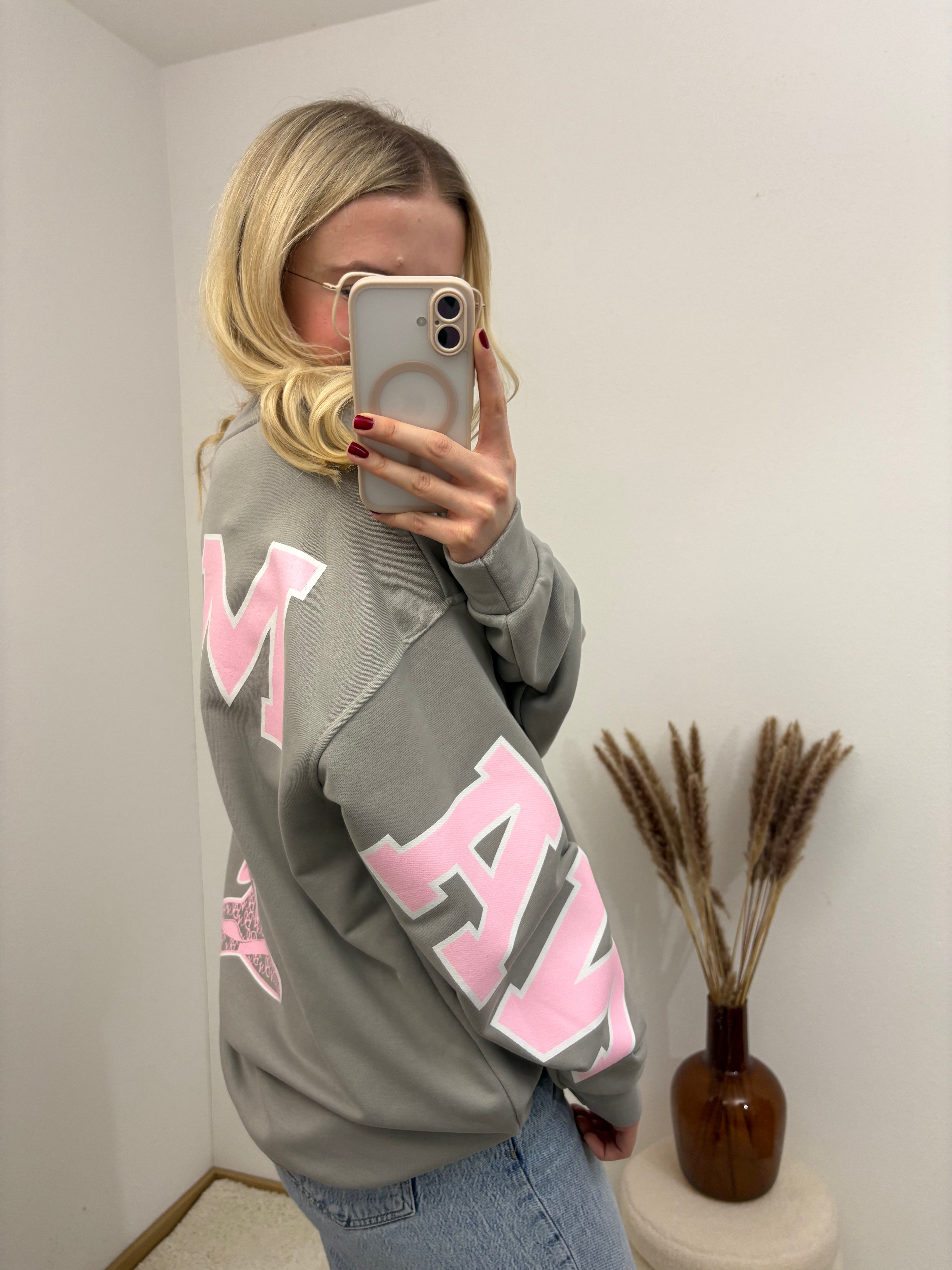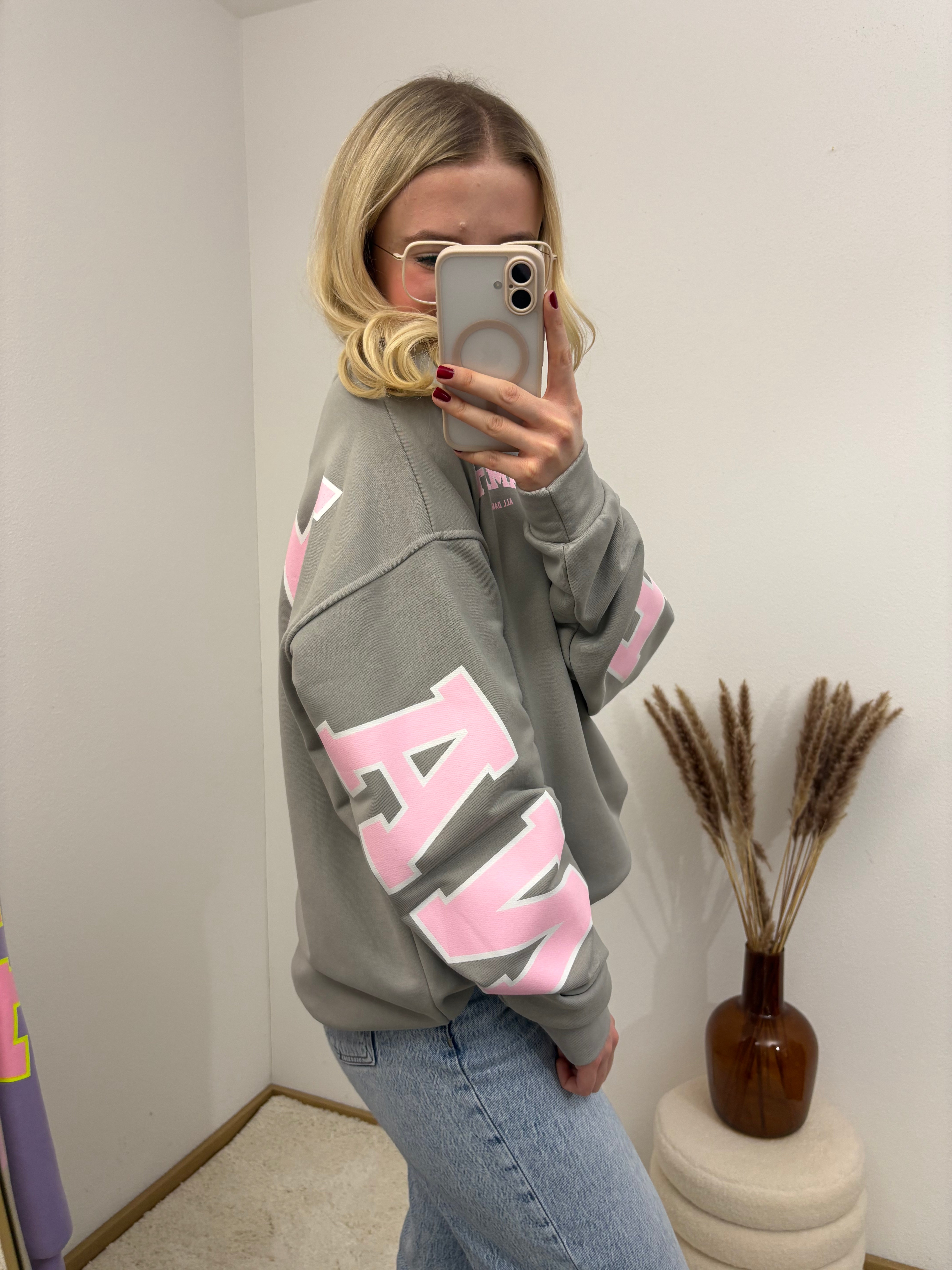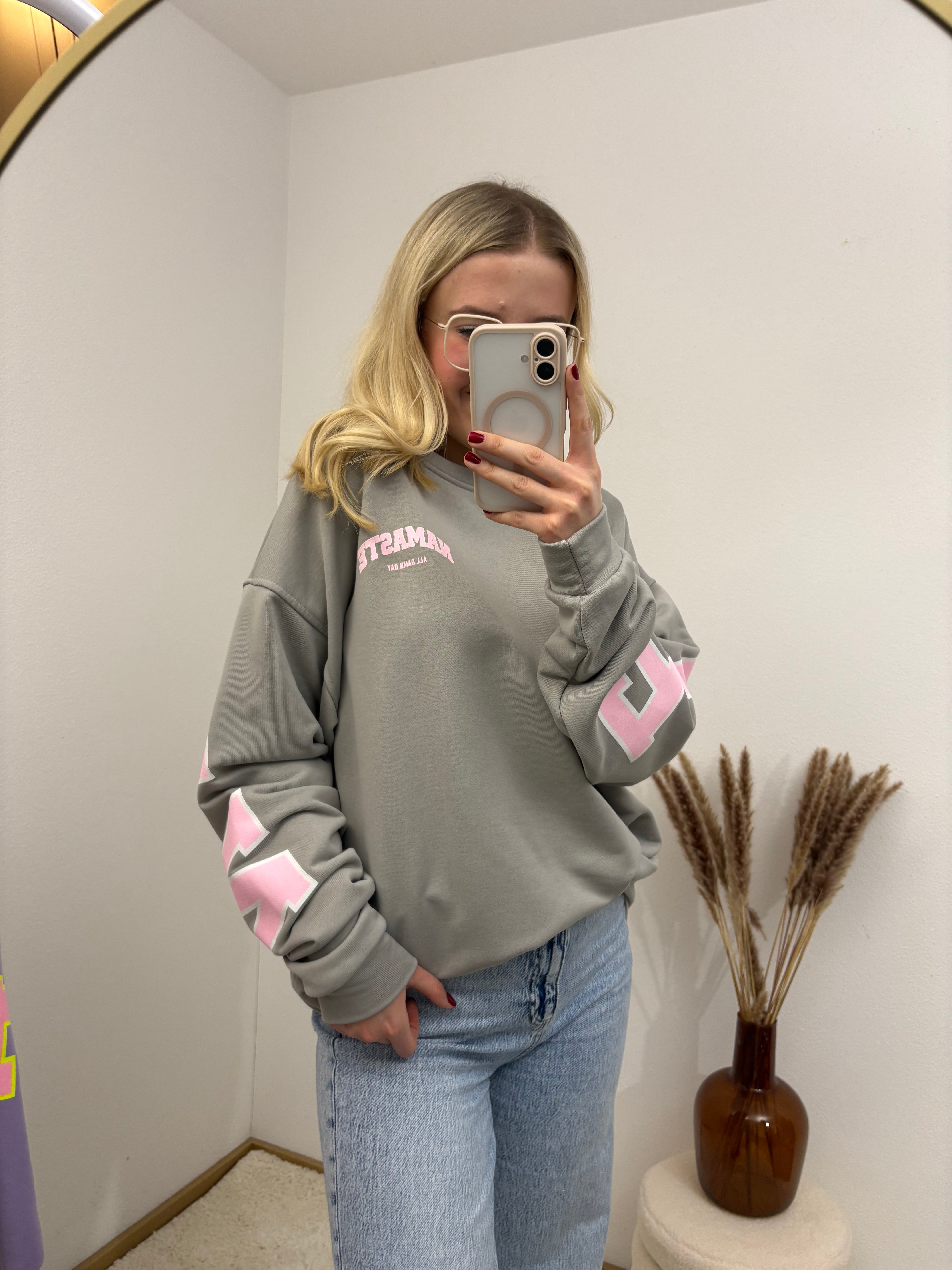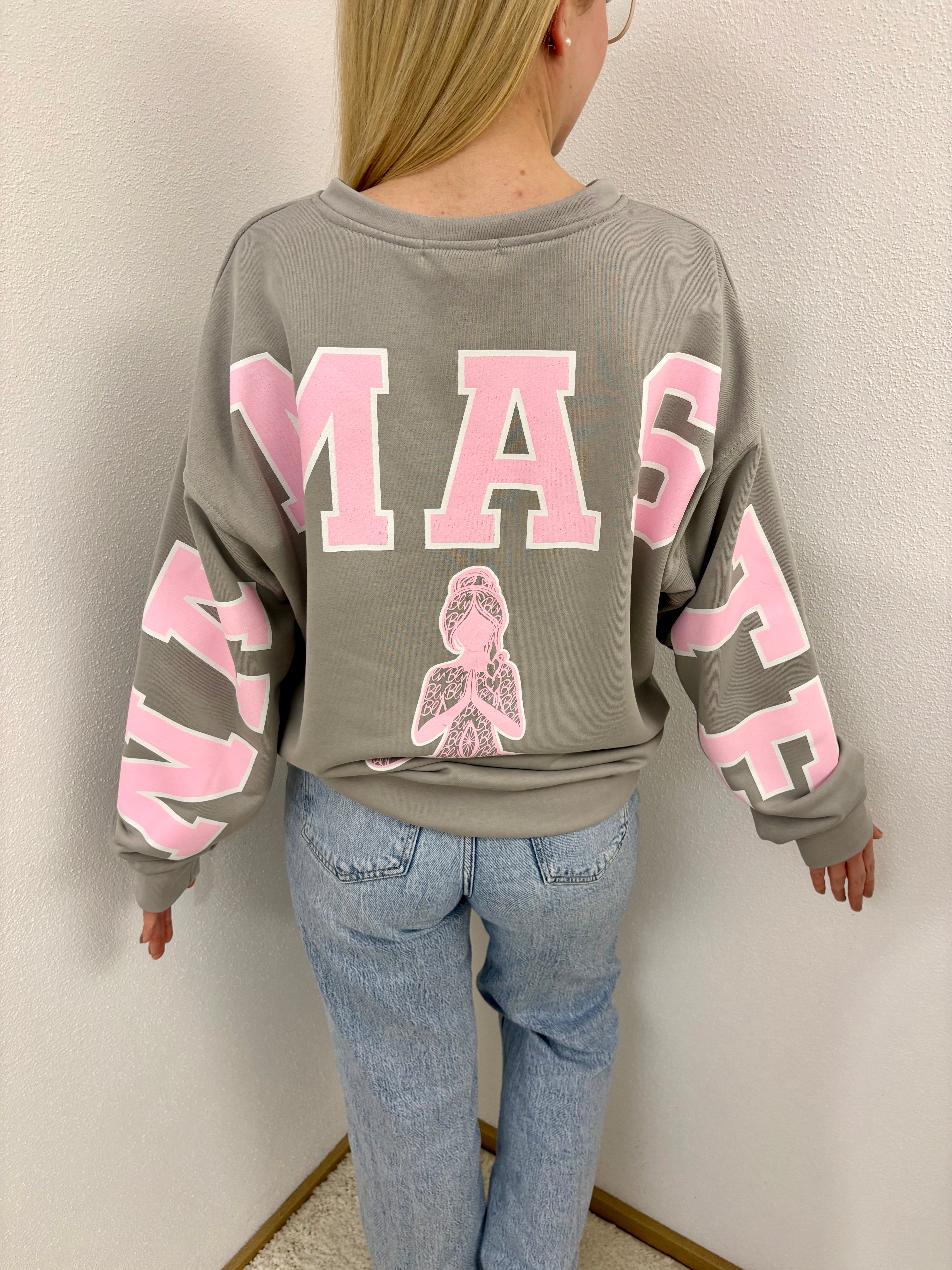 Sweater Namaste Sweatshirt Pullover Grau Rosa