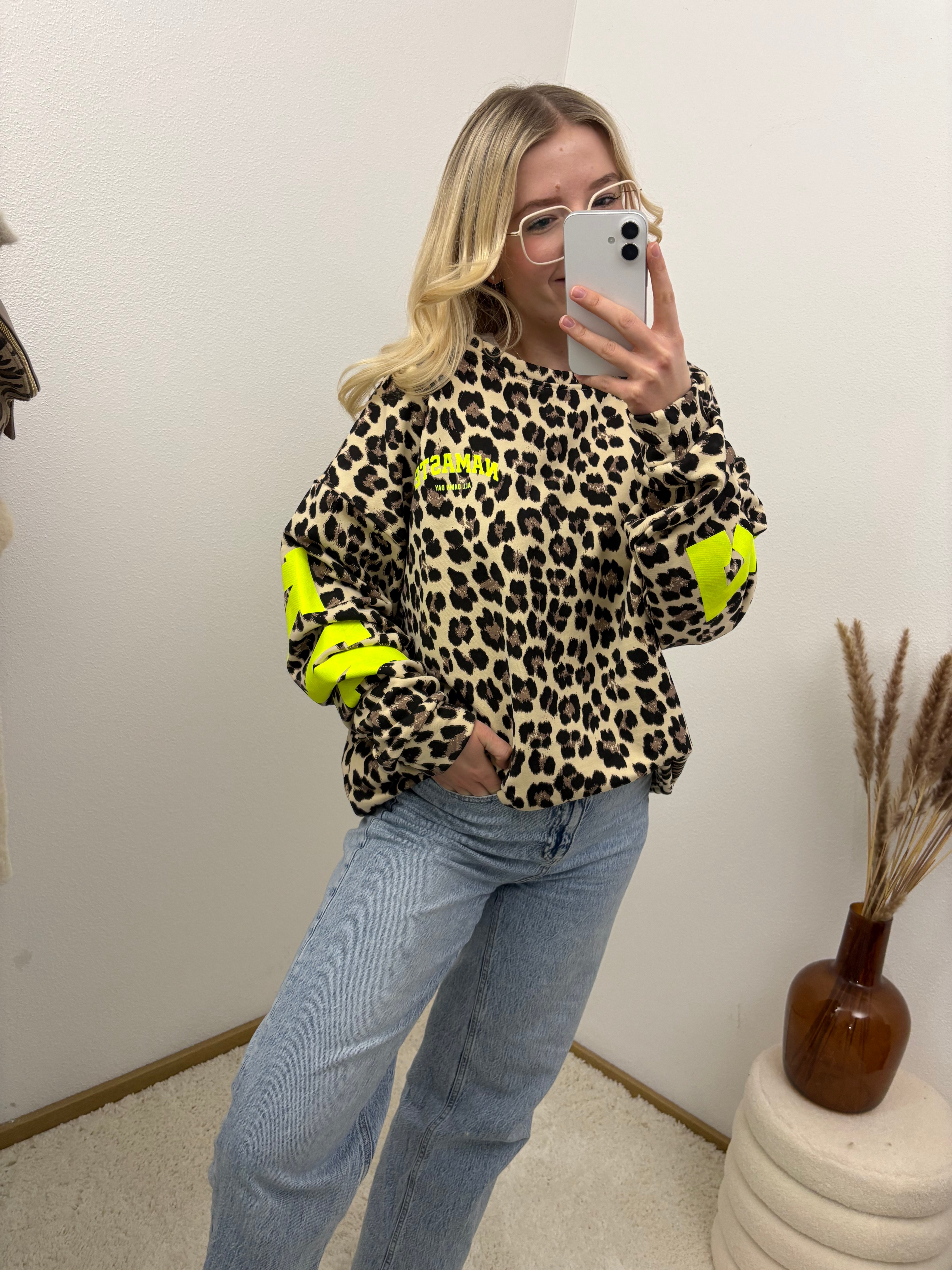 Sweater Namaste Sweatshirt Pullover Leo Gelb Neon