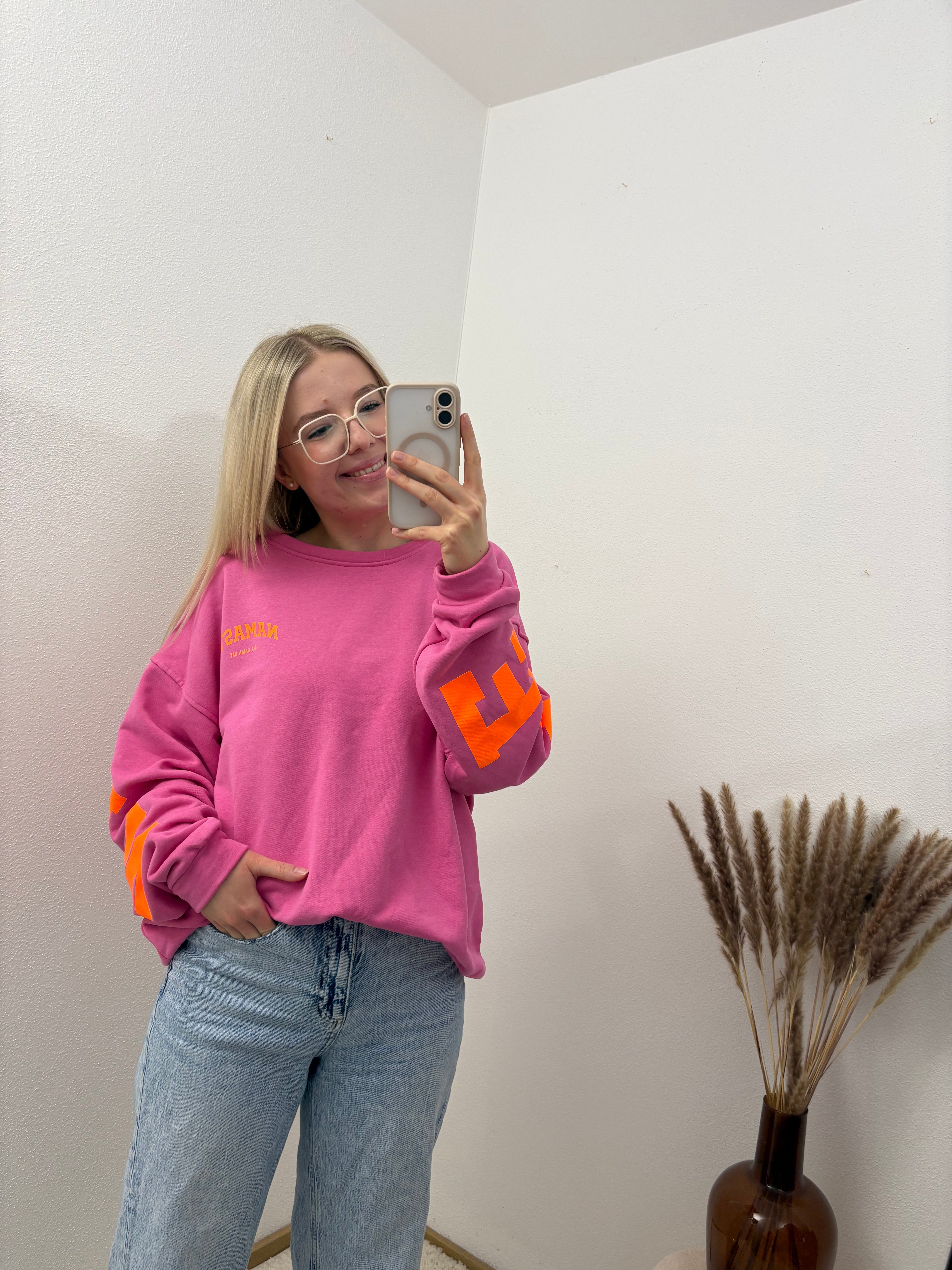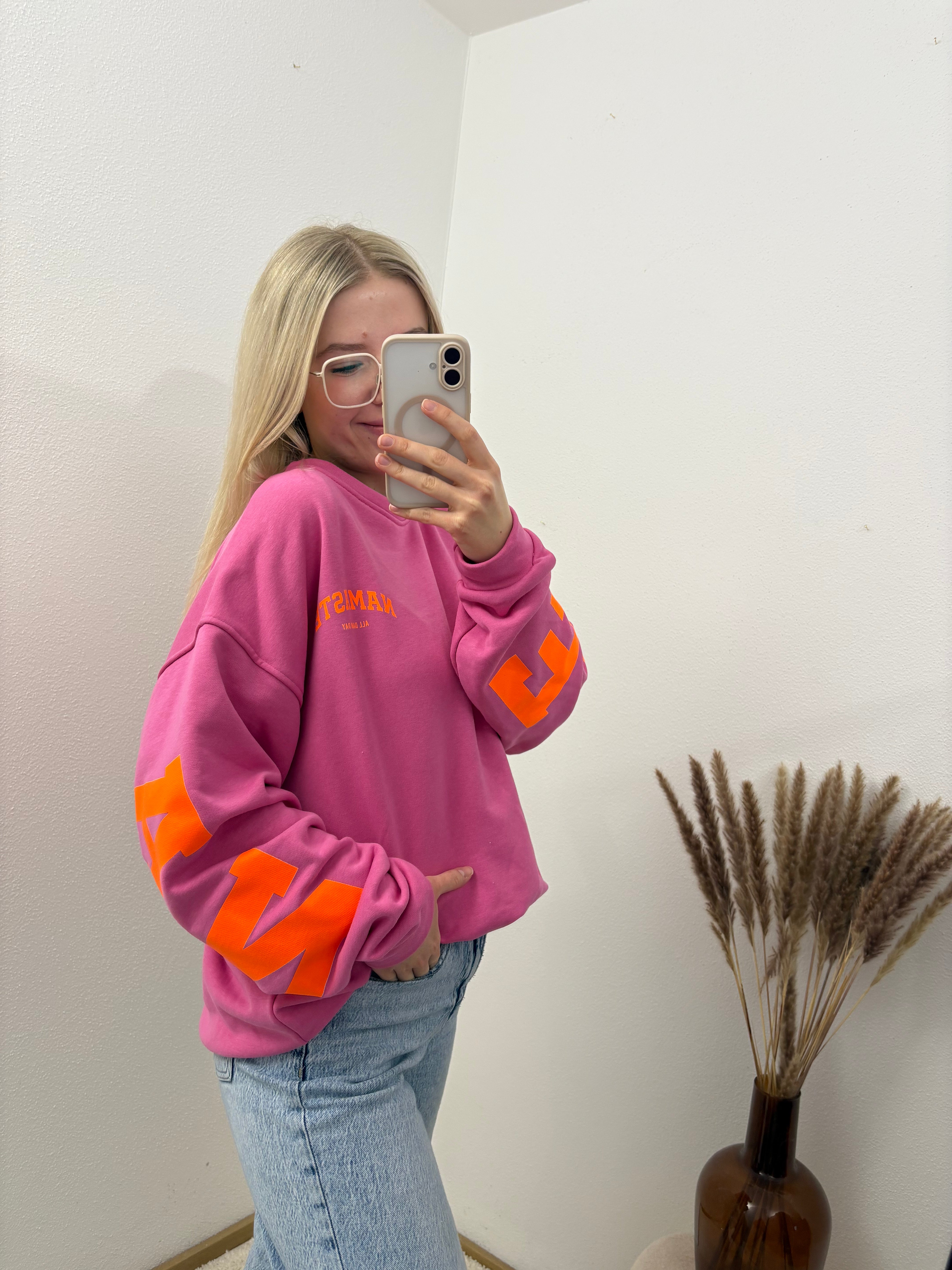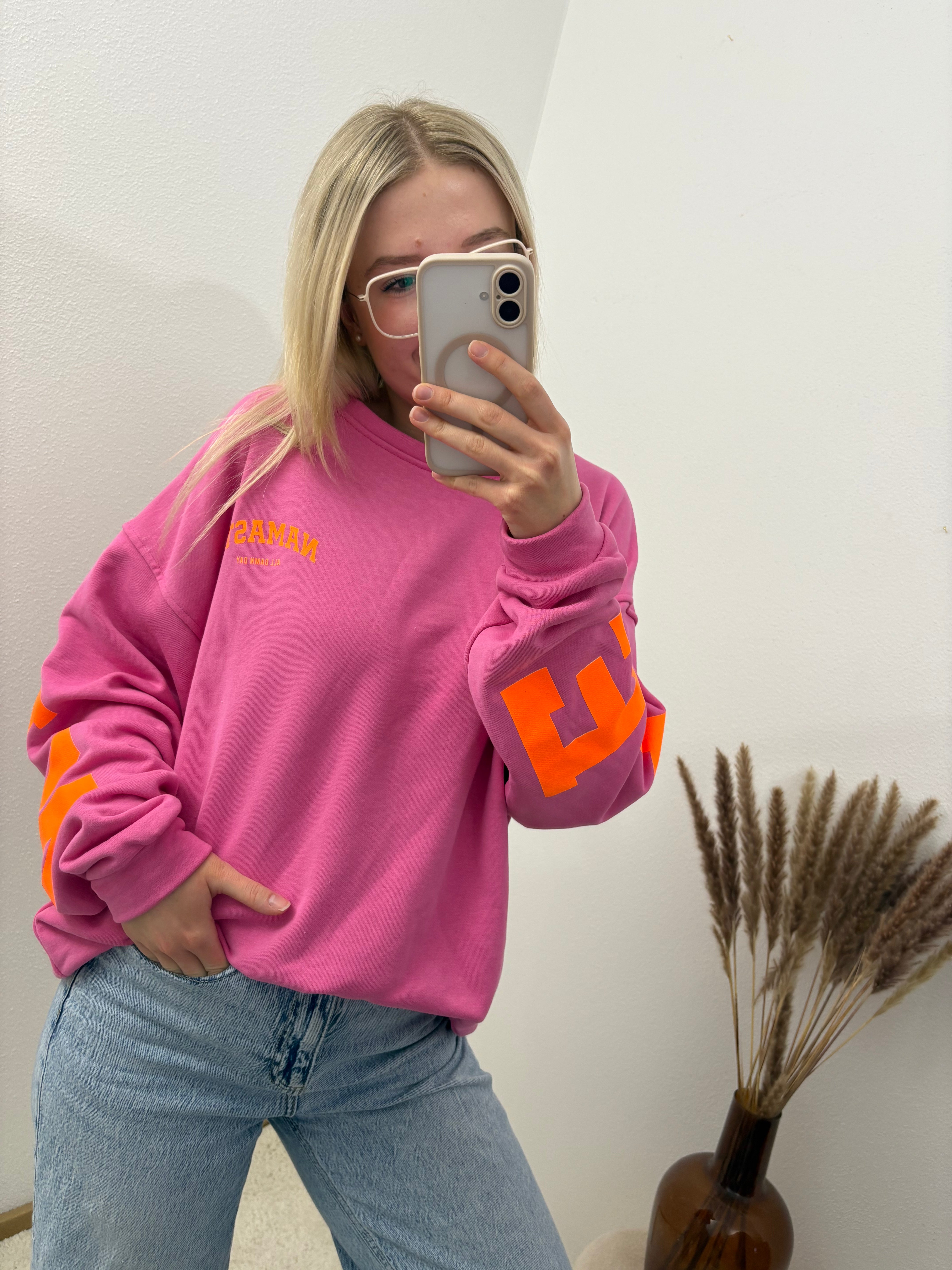 Sweater Namaste Sweatshirt Pullover Pink Orange